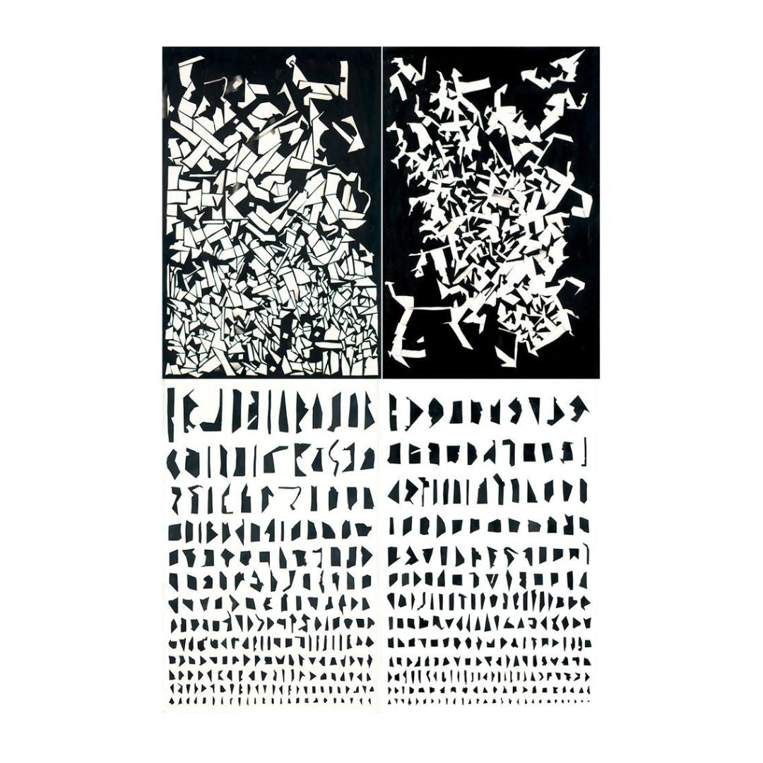 La obra explora lo imprevisto dentro del proceso creativo, tomando fragmentos de cartulina que fueron clasificados y reconfigurados para crear composiciones aleatorias. El resultado genera una visualidad inesperada que cuestiona la representación, la necesidad de imponer orden y el carácter mutable de aquello que concebimos como real.