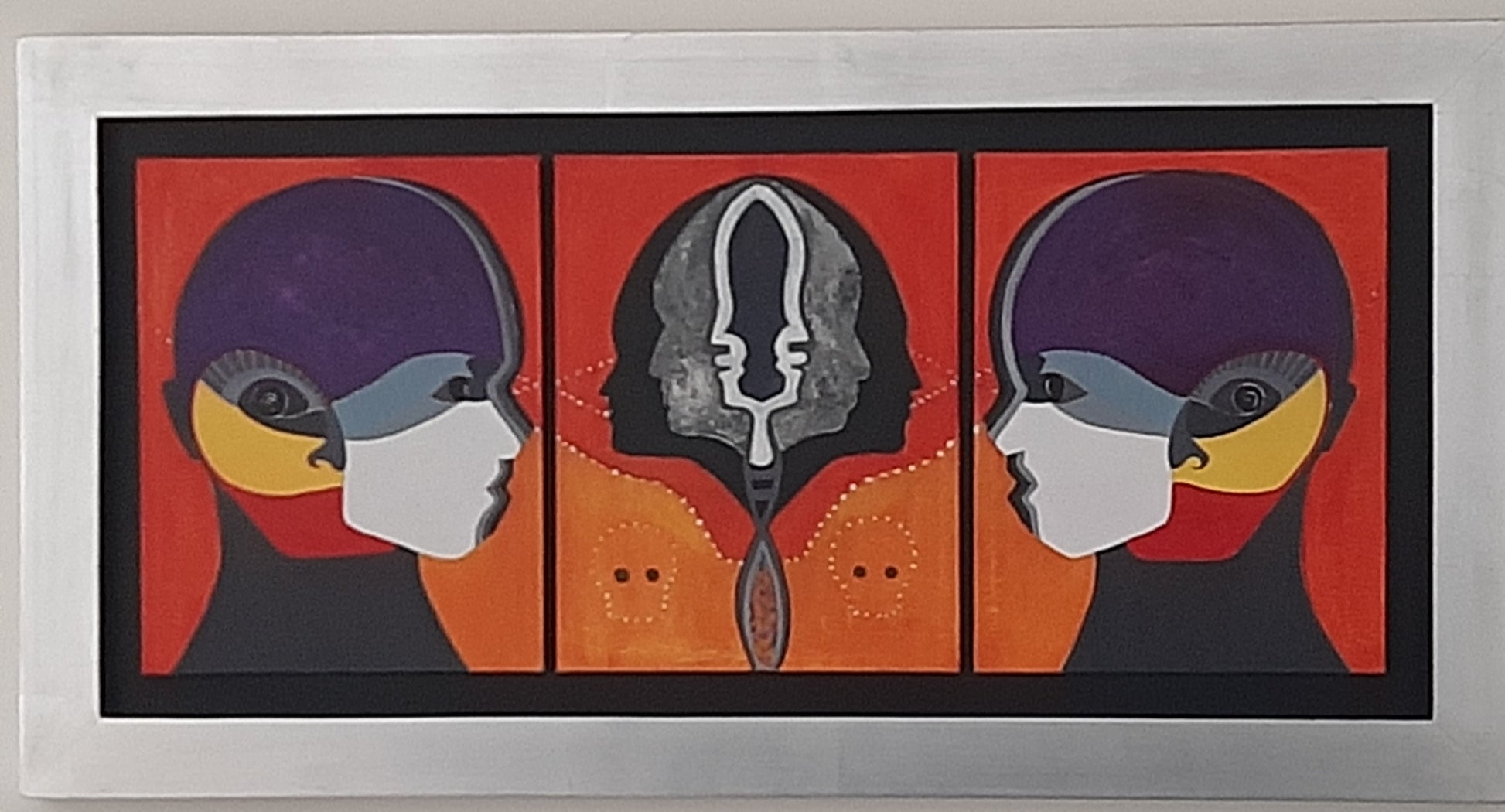 Tríptico, técnica mixta sobre cartón entelado (Enmarcado)