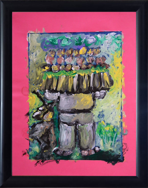 "Carmelo y Jacinto" es una obra de la colección "México Mágico", realizada en acrílico sobre papel, con dimensiones de 32.5 x 25 cm. Esta pieza fue creada durante el periodo de la pandemia de COVID-19, un tiempo en el que la crisis provocó una profunda reflexión y la necesidad de redescubrir una identidad personal y colectiva.