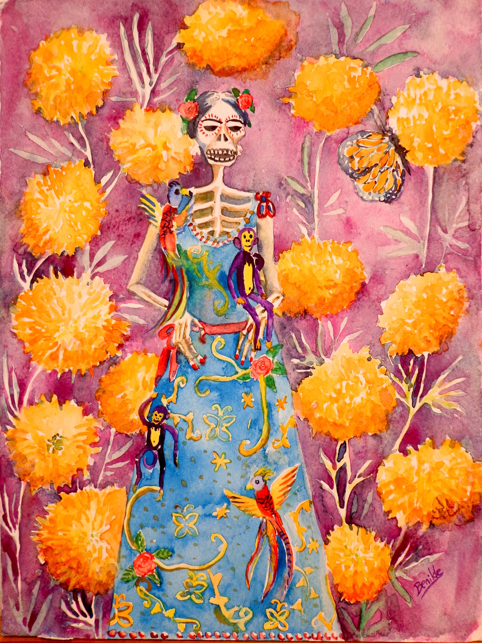 Se acerca la temporada más especialmente mexicana, momento para recordar a aquellos que se nos adelantaron en esta transición de la vida. Una acuarela especialmente inspirada en México.
