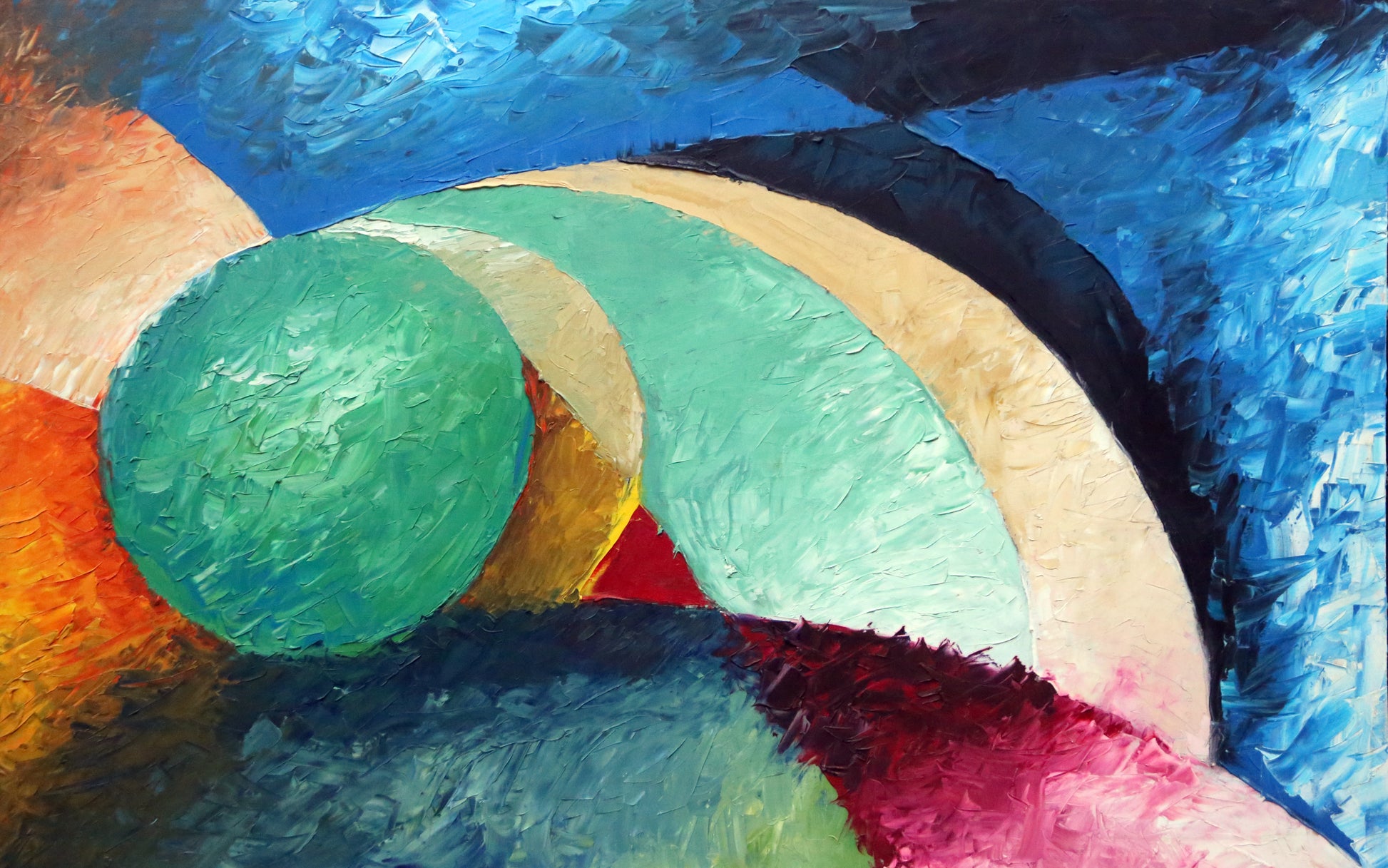 En "Caverna de jade", la aplicación gestual y dinámica de los colores primarios y secundarios refleja el proceso catártico del artista, influenciado por la música. Hernández Soto traduce las sensaciones provocadas por las melodías en una serie de formas ondulantes y texturas que imitan el flujo de la música. Las pinceladas rápidas y las mezclas de color crean un sentido de movimiento continuo y pulsante, mientras que las áreas de color sólido aportan estabilidad y contraste.