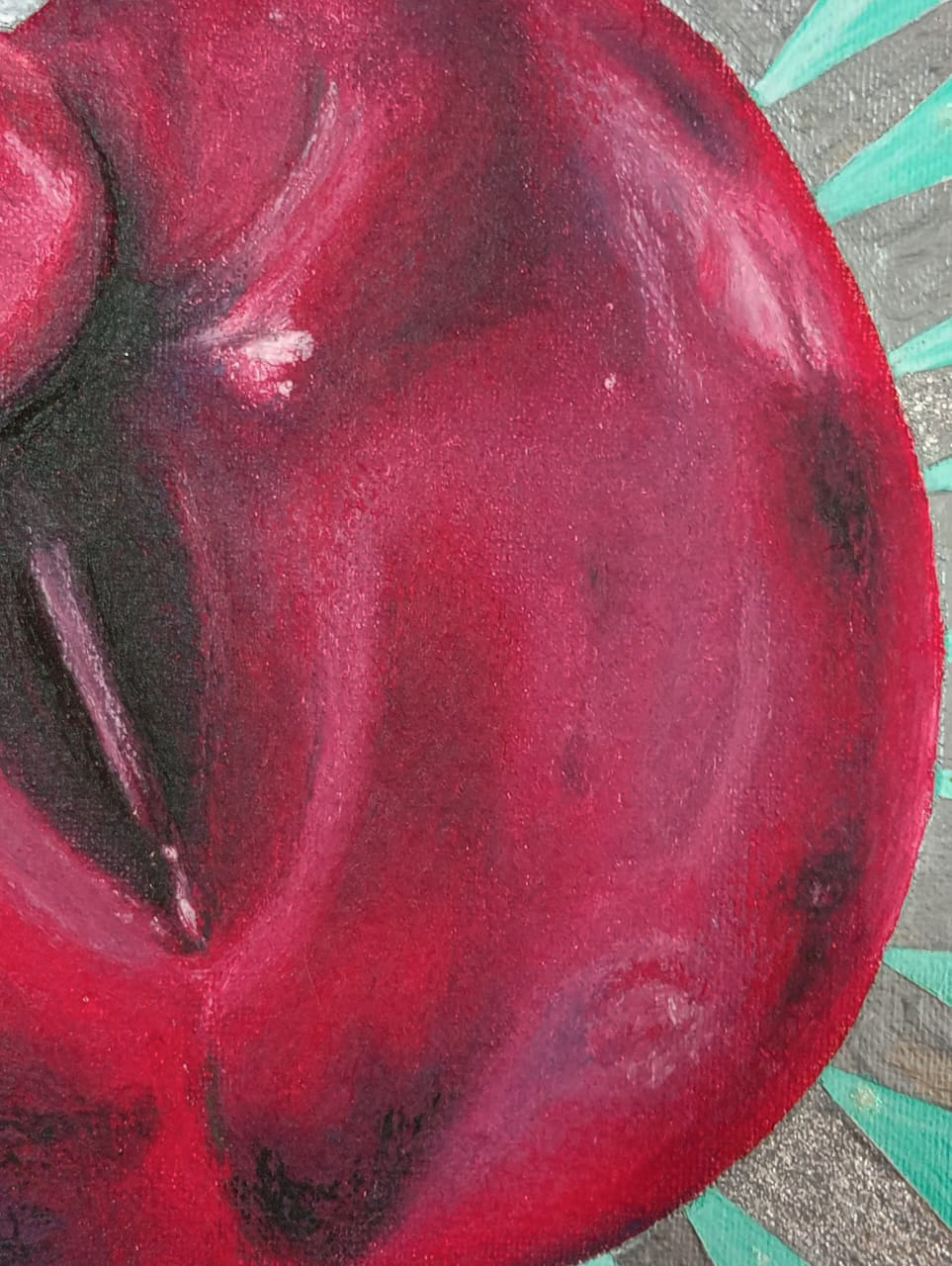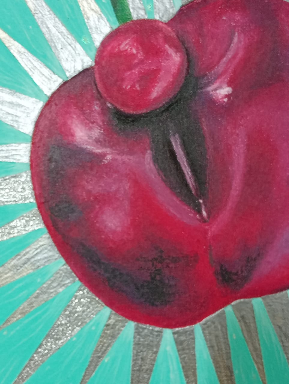 Esta pieza es parte de una serie de dibujos, inspirados en frutas y vegetales, objetos cotidianos. Que me atraen y me seducen con sus formas y colores, y ésta pintura, es en homenaje al clítoris.