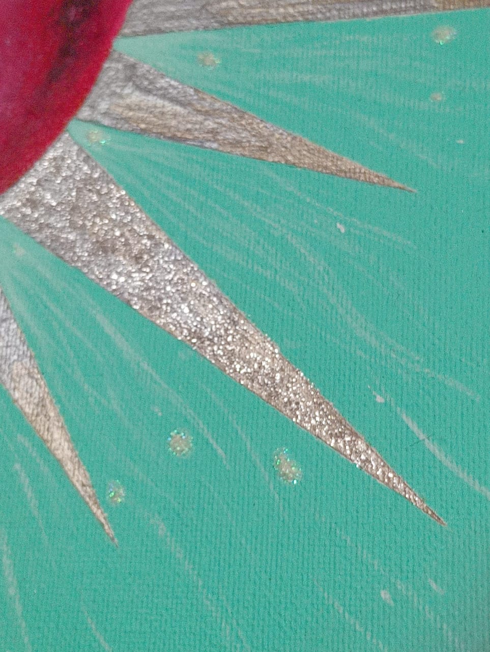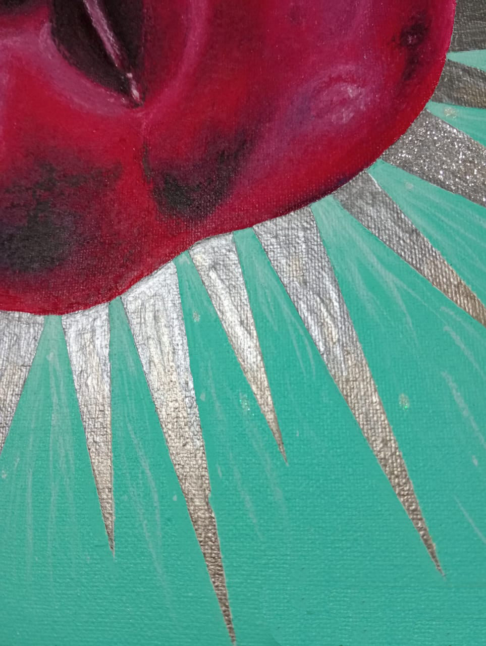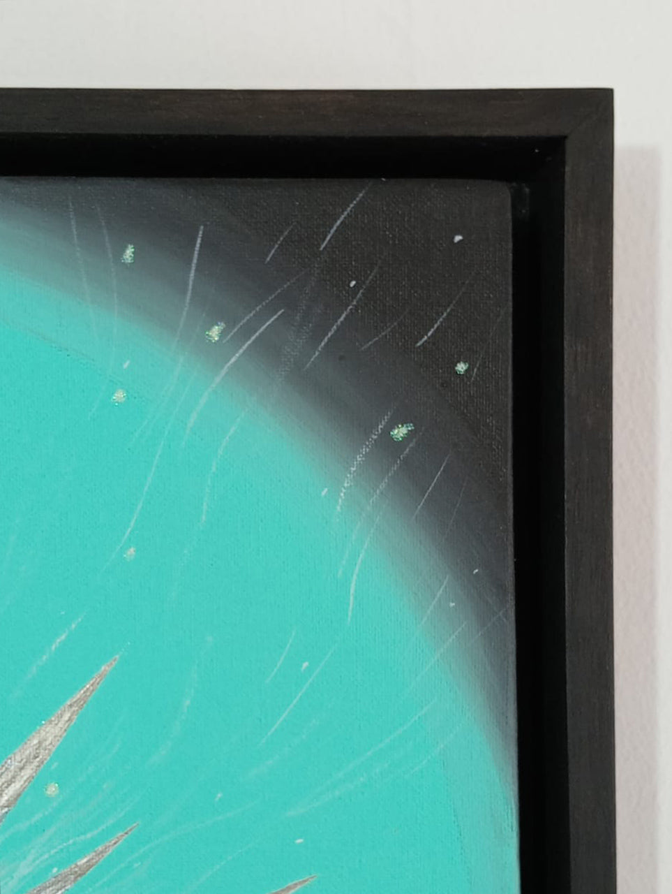 Óleo pastel, pintura acrílica y glitter sobre tela. Enmarcado con caja veneciana de madera de banak.