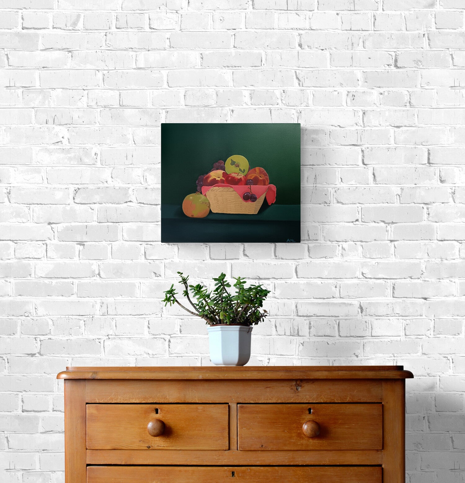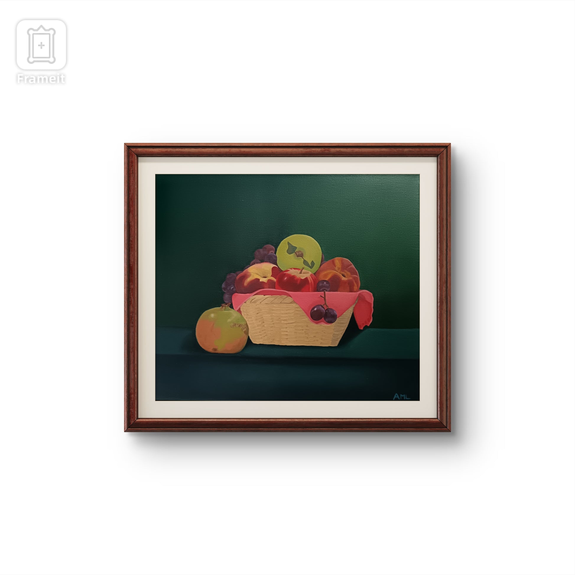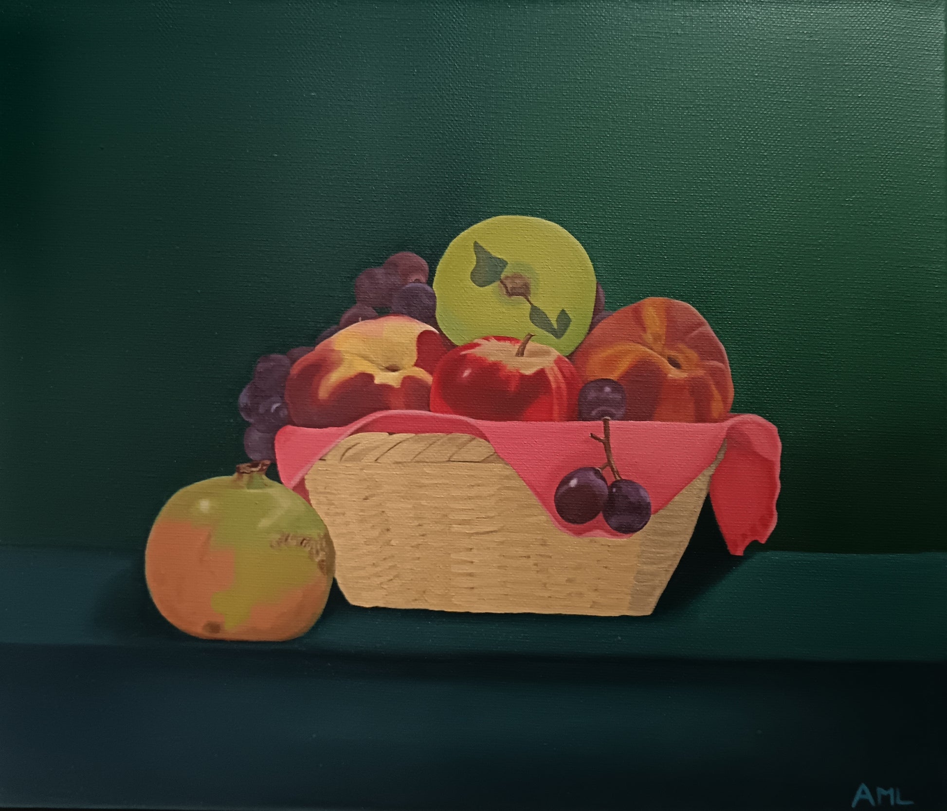 Bodegón, trabajo por capas. Sin Marco. El clásico cesto de frutas.