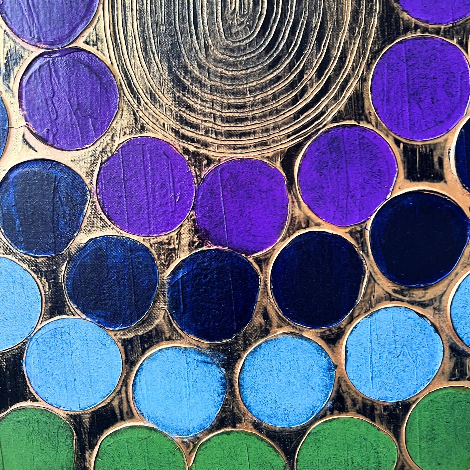 Esta obra, que forma parte de mi serie Amuletos está basada en los chakras de cuerpo. La inspiración son cuazos y piedras con energías sanadoras, que usamos como talismanes para protección o atracción de energía y beneficios.