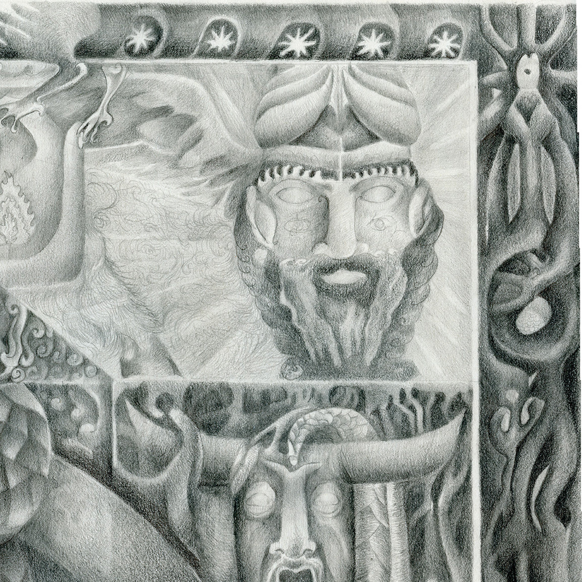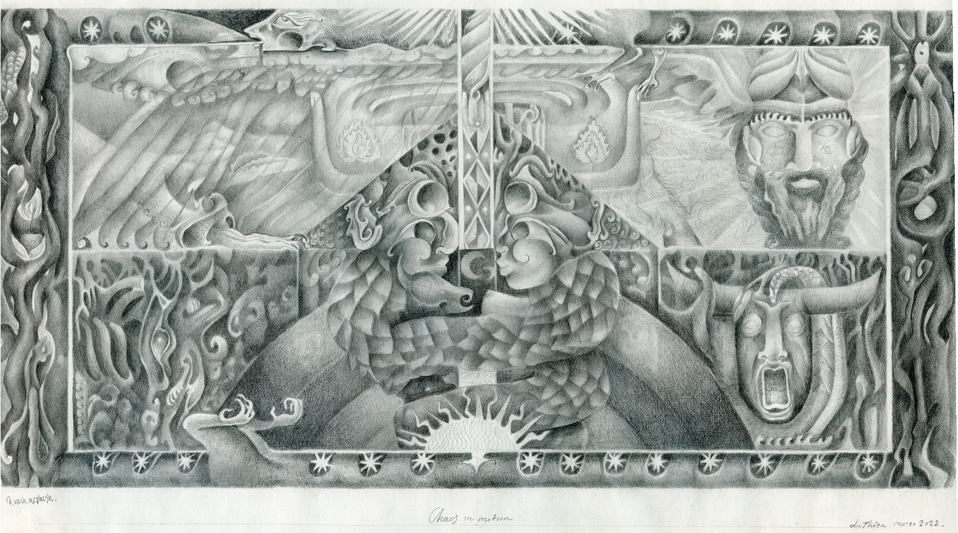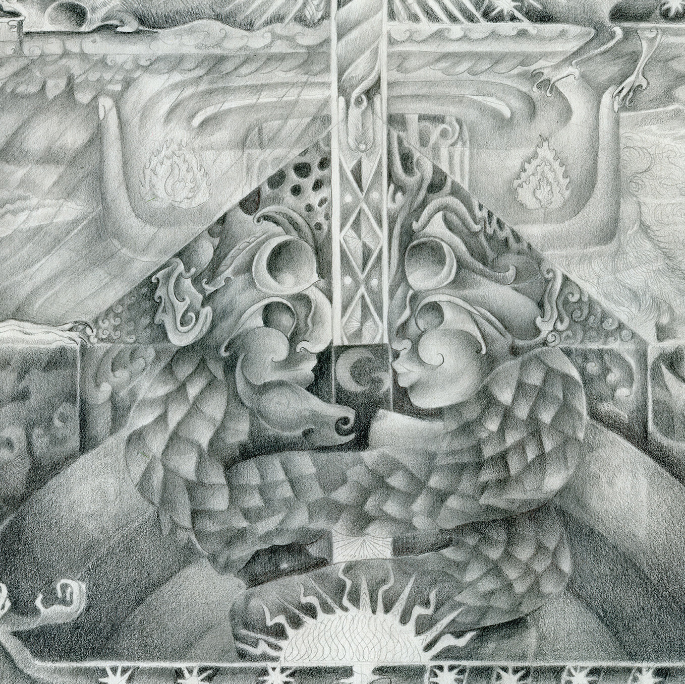 En el libro ""Mitología Occidental"" escrito por Joseph Campbell se habla de la victoria de Marduk sobre Tiamat, Yavhé sobre el Leviatán levítico y Zeus sobre la Diosa Gea. Varias representaciones del mismo momento mítico en el que los patriarcas tomaron los antiguos mitos de la Serpiente y la Luna como trofeos de victoria para adornar sus espadas y escudos generando una concepción de vida acorde a las dualidades del mal y el bien, la luz y la oscuridad, el civilizado y el bárbaro a través de todo el Occidente. Pero es inefable el hecho de que nuestro Ser yace más allá de estos opuestos, representado en las dos Serpientes que se miran en el centro, divididas, pero en la mirada se convierten en un solo ser.