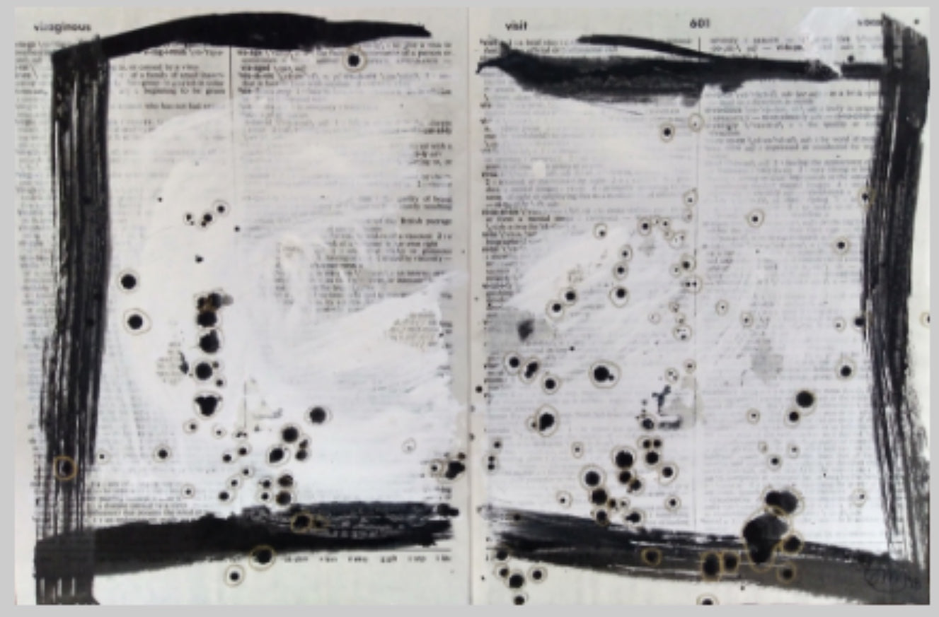 Acrílico, acuarela y tinta sobre hojas de diccionario