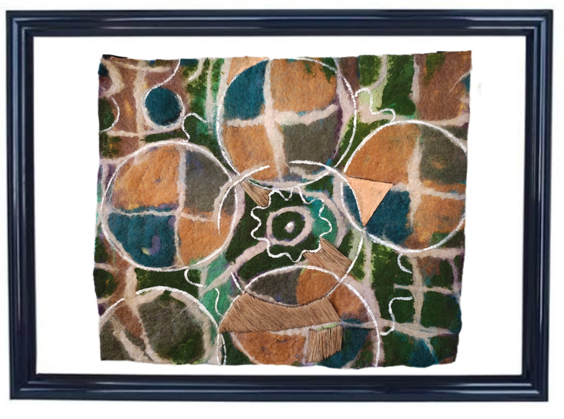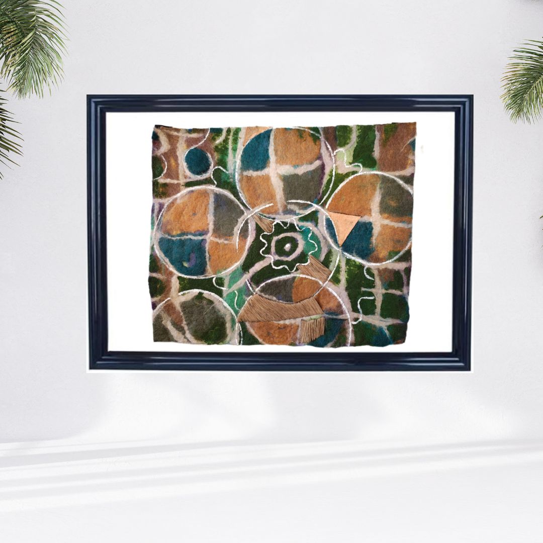 Textil creado mediante la técnica de Felting húmedo intervenido con acrílico y bordado.