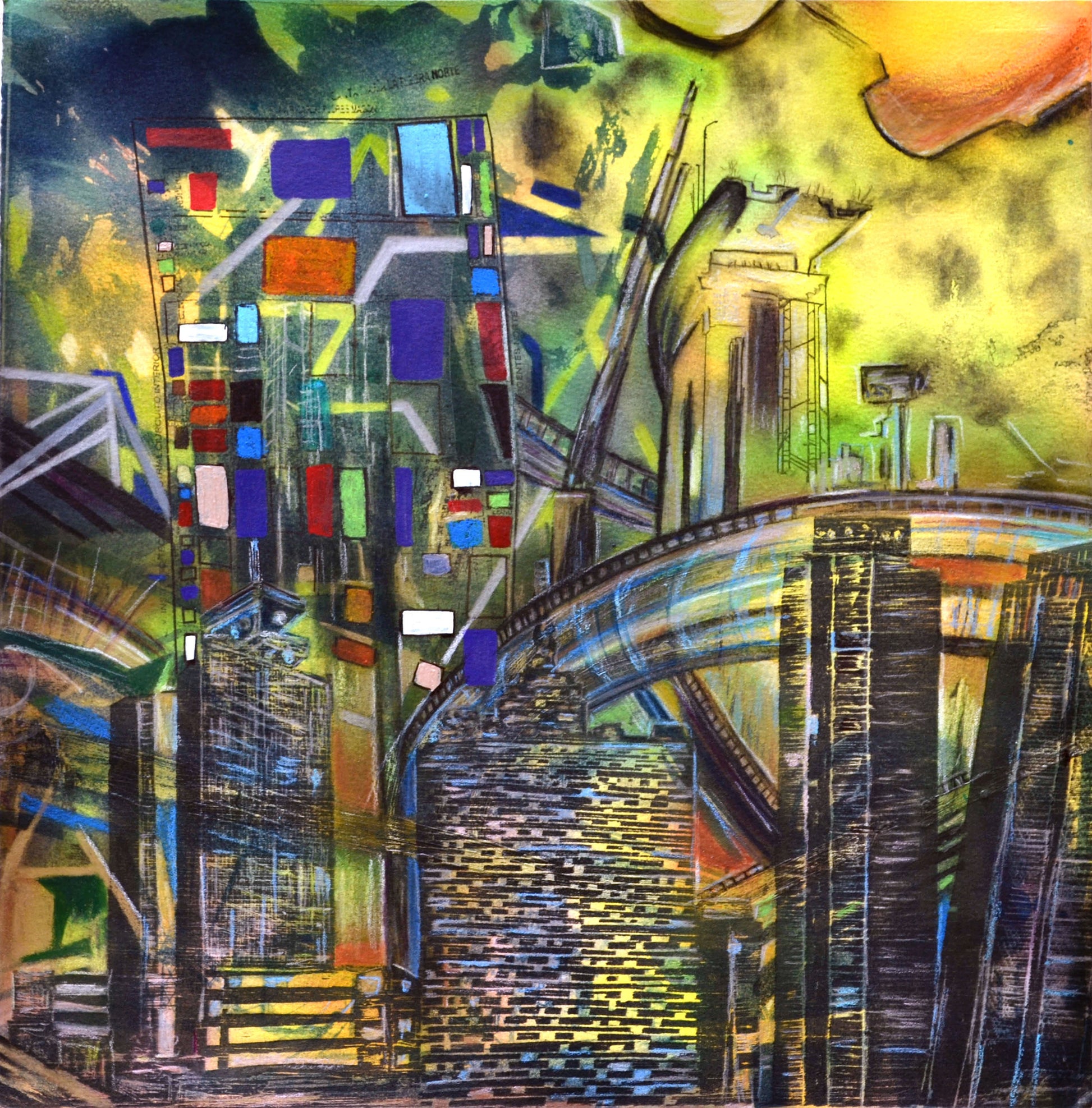 TÉCNICA: Mixta (Cianotipoa, xilografía, transfer, tintas, ceras, esténcil y omni-crom /Papel Arches Velin de 300 de gr./m2