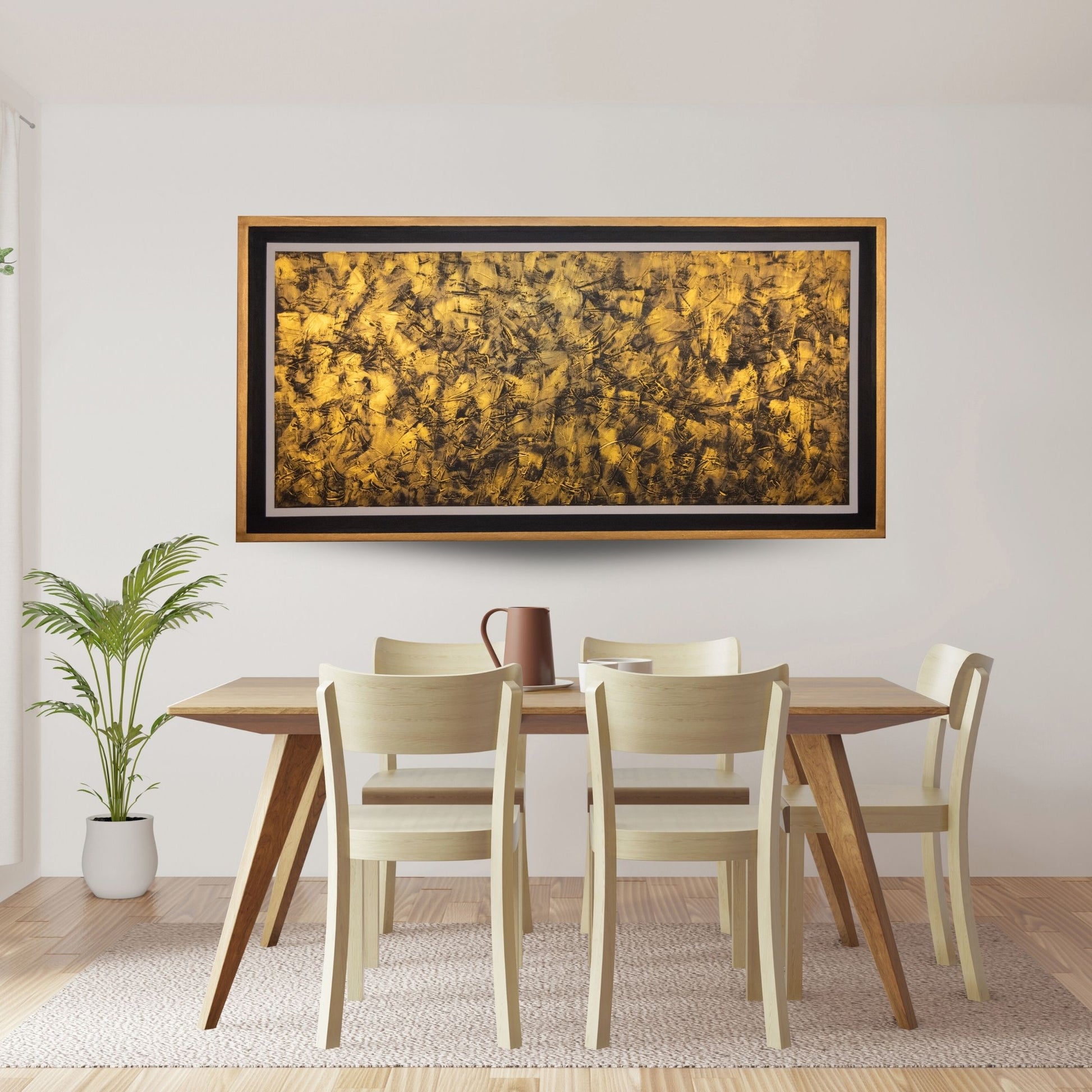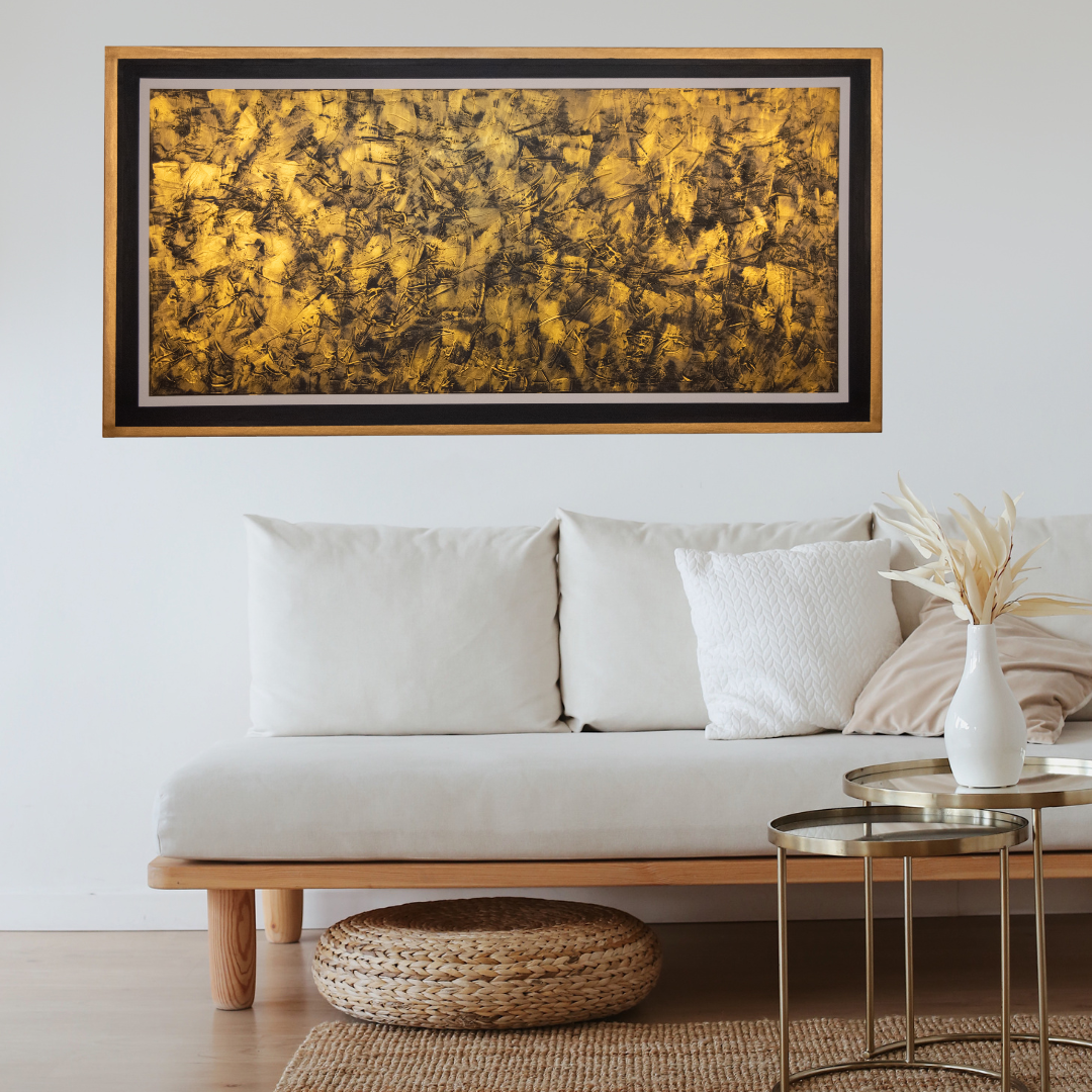 Cada pincelada y cada capa de esta pieza ha sido cuidadosamente elaborada para evocar una sensación de elegancia atemporal. Montado sobre un bastidor de madera estufada de primera calidad, "Textura Dorada" no solo es una obra de arte, sino una inversión en diseño y durabilidad. Sus matices dorados no solo iluminarán cualquier espacio, sino que también añadirán un toque de exclusividad y calidez.