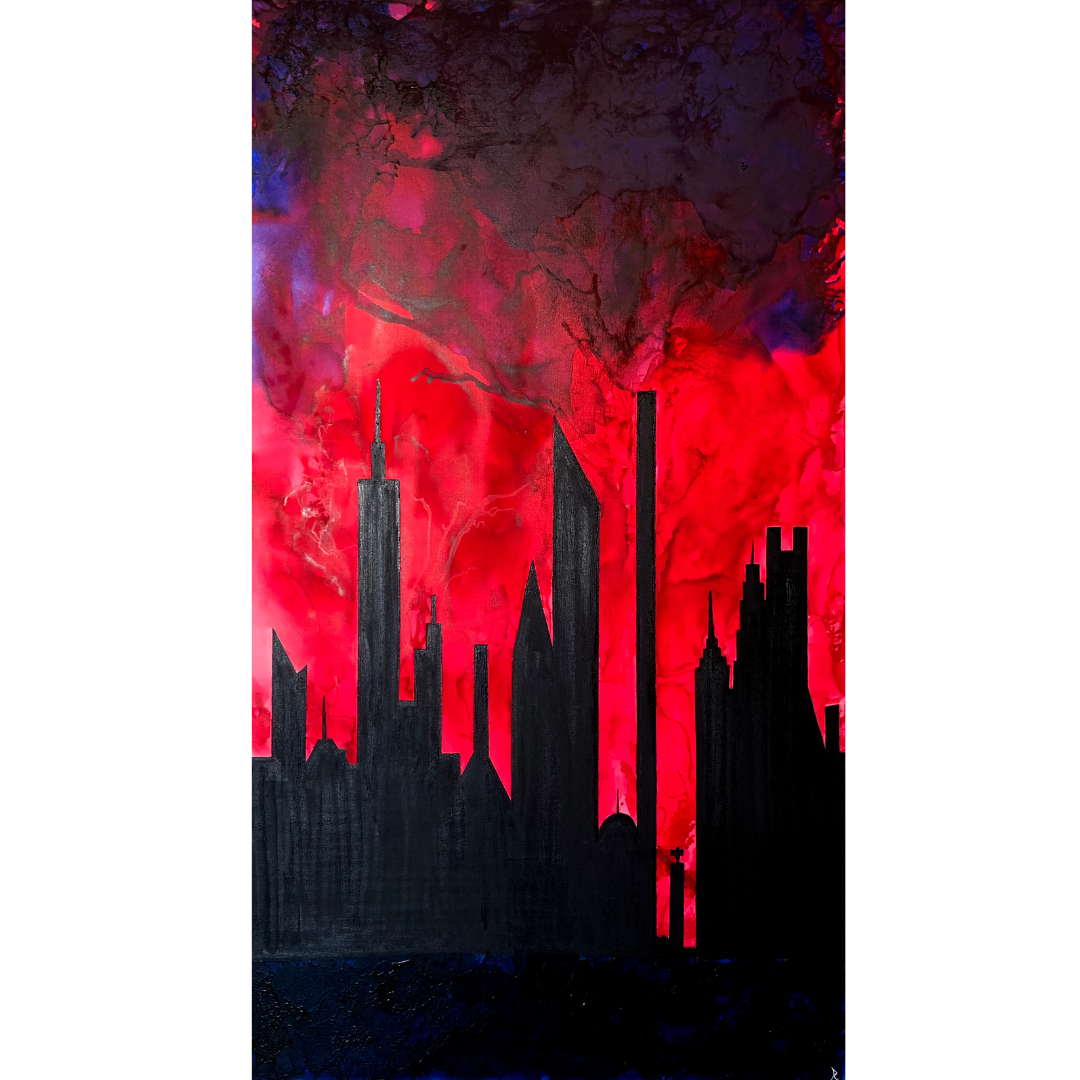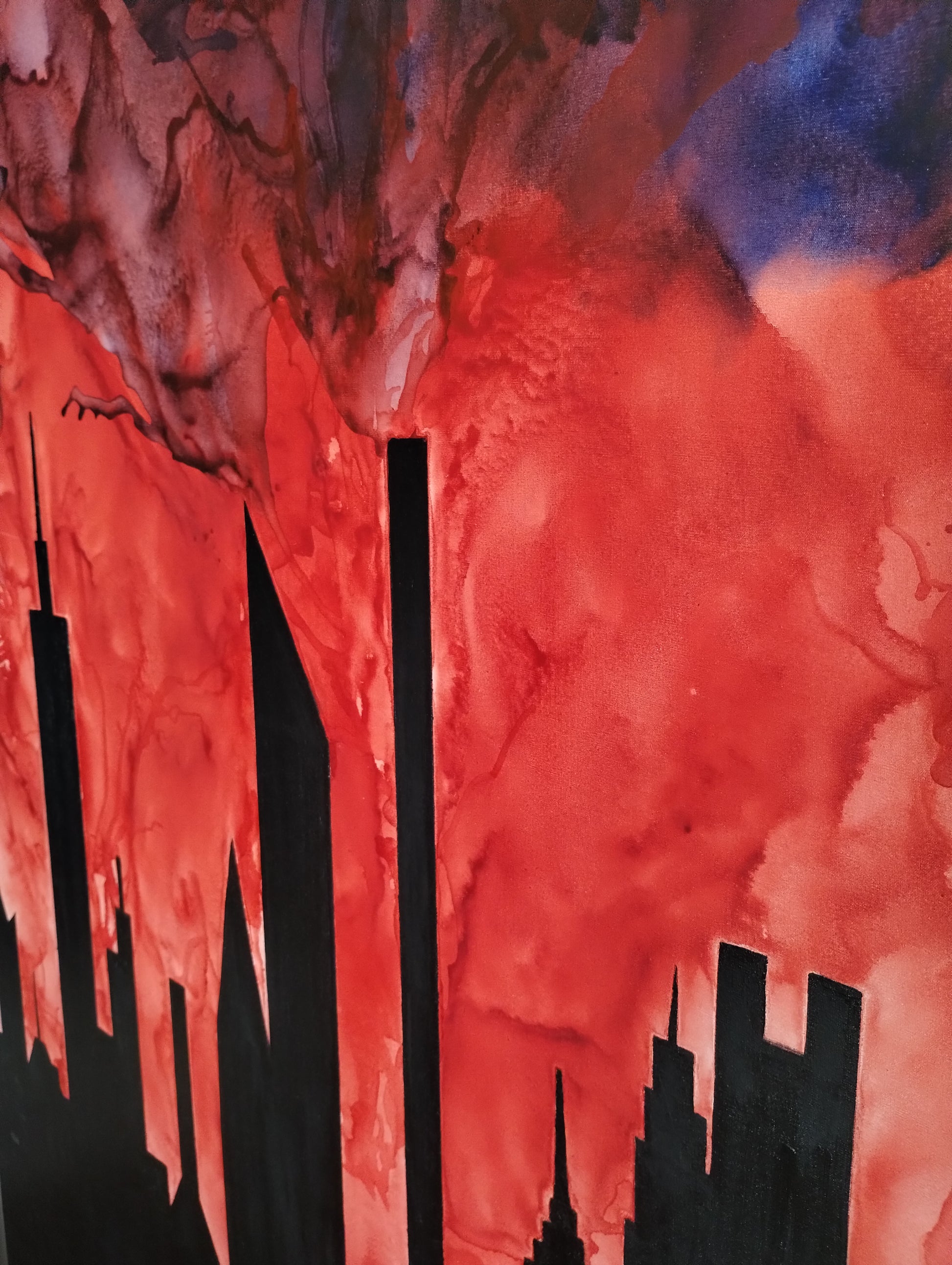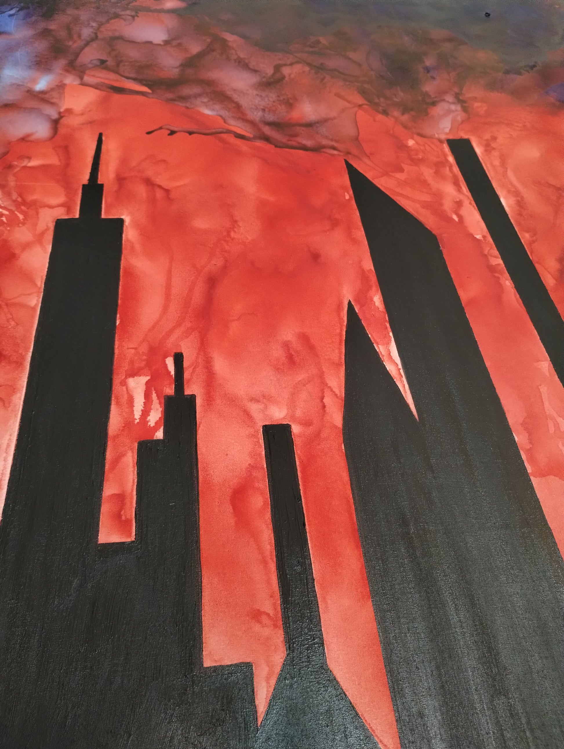 "Ciudat" Óleo hecho líquido manejado con aire caliente. Representa la dominación de la naturaleza a pesar del desarrolo del hombre, genera contrastes y belleza en nuestro día a día.