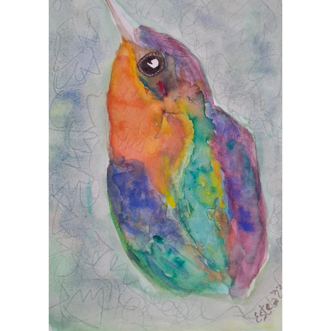 El colibrí lo pinté porque es mi ave favorita. Representa y conecta con lo divino, dicen que al ver un colibrí da buena suerte, da protección un colibrí, nos libera de las energías negativas, su plumaje y ella misma es hermosura