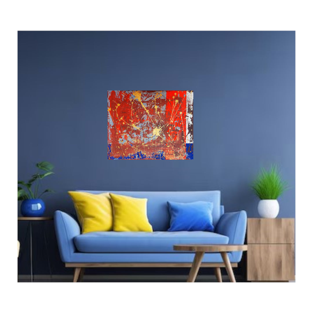 Arte abstracto sobre bastidor de tela de algodón con técnica de raspado, salpicado, empaste y pinceladas.