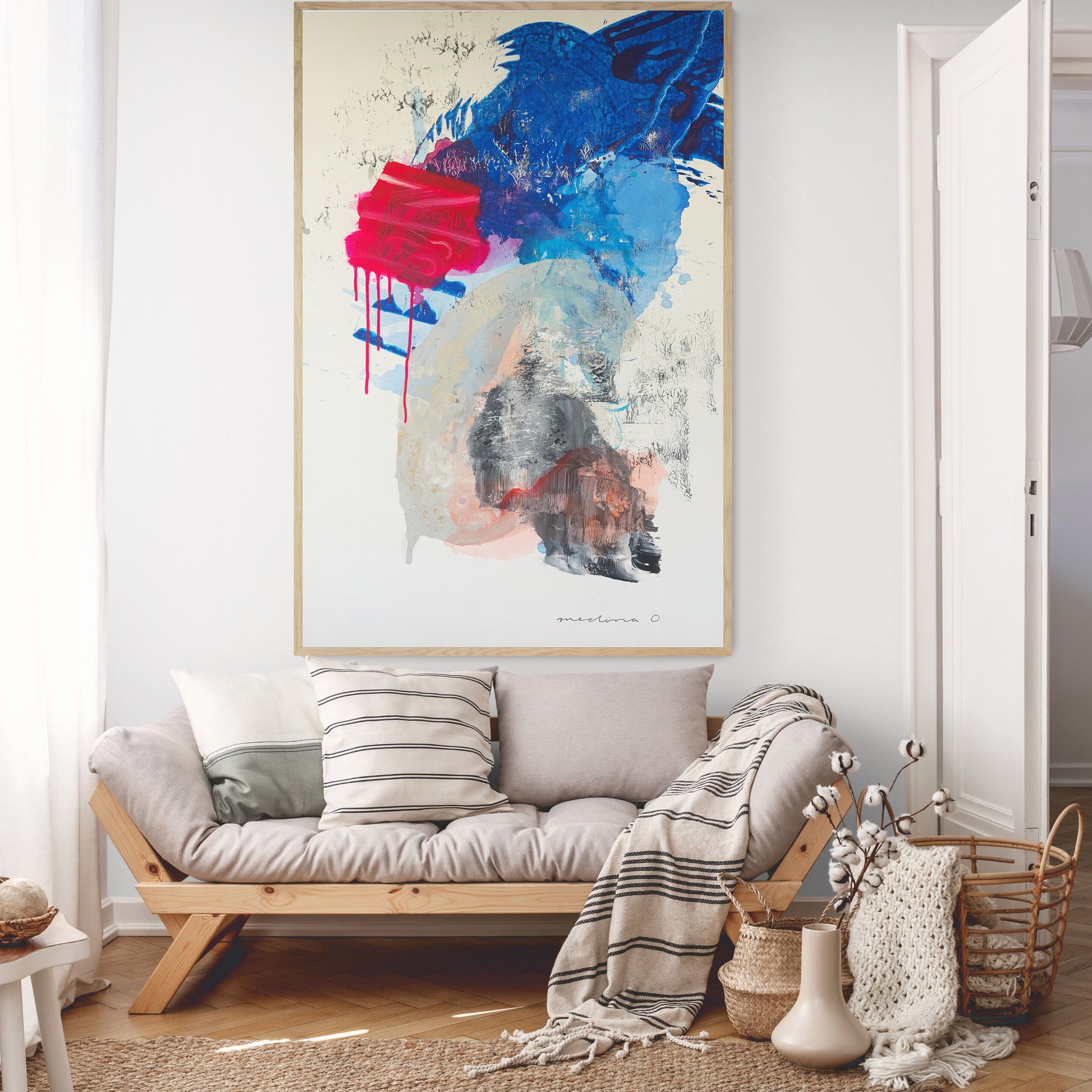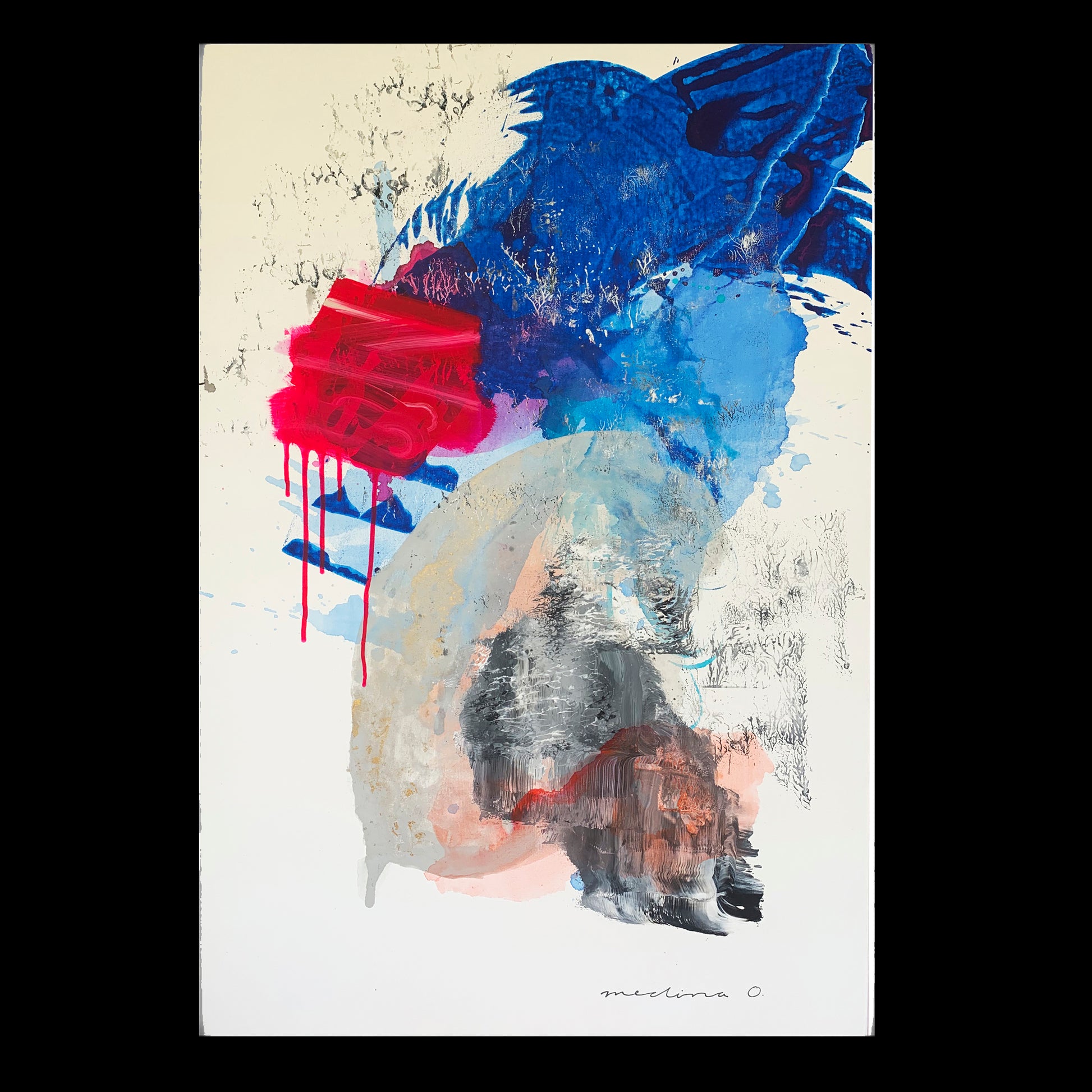 Conexiones 2 forma parte del trabajo realizado durante el 2023, donde se explora la forma en que interactuamos con nuestro entorno, y como se crean puentes entre quienes habitamos un mismo espacio. Obra abstracta que invita al espectador a imaginar, aportando energía, dinamismo y color al espacio que habita.