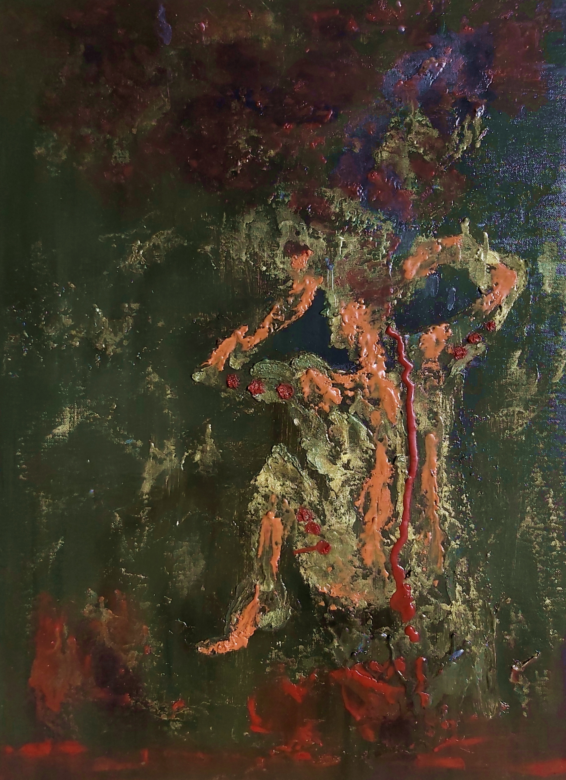 Concepción del cuerpo y la enfermedad con su entorno en una obra de encáustica con óleo.