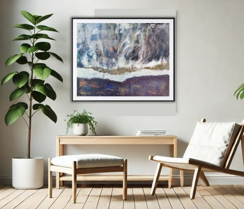 Una obra que captura el flujo dinámico del agua, entrelazando tonos profundos y claros que evocan movimiento y energía natural.