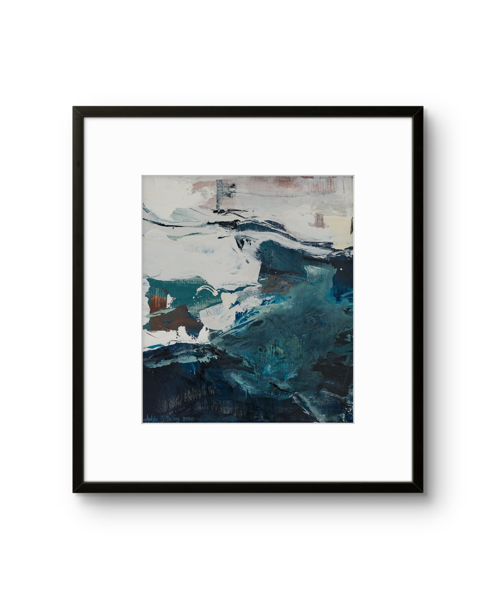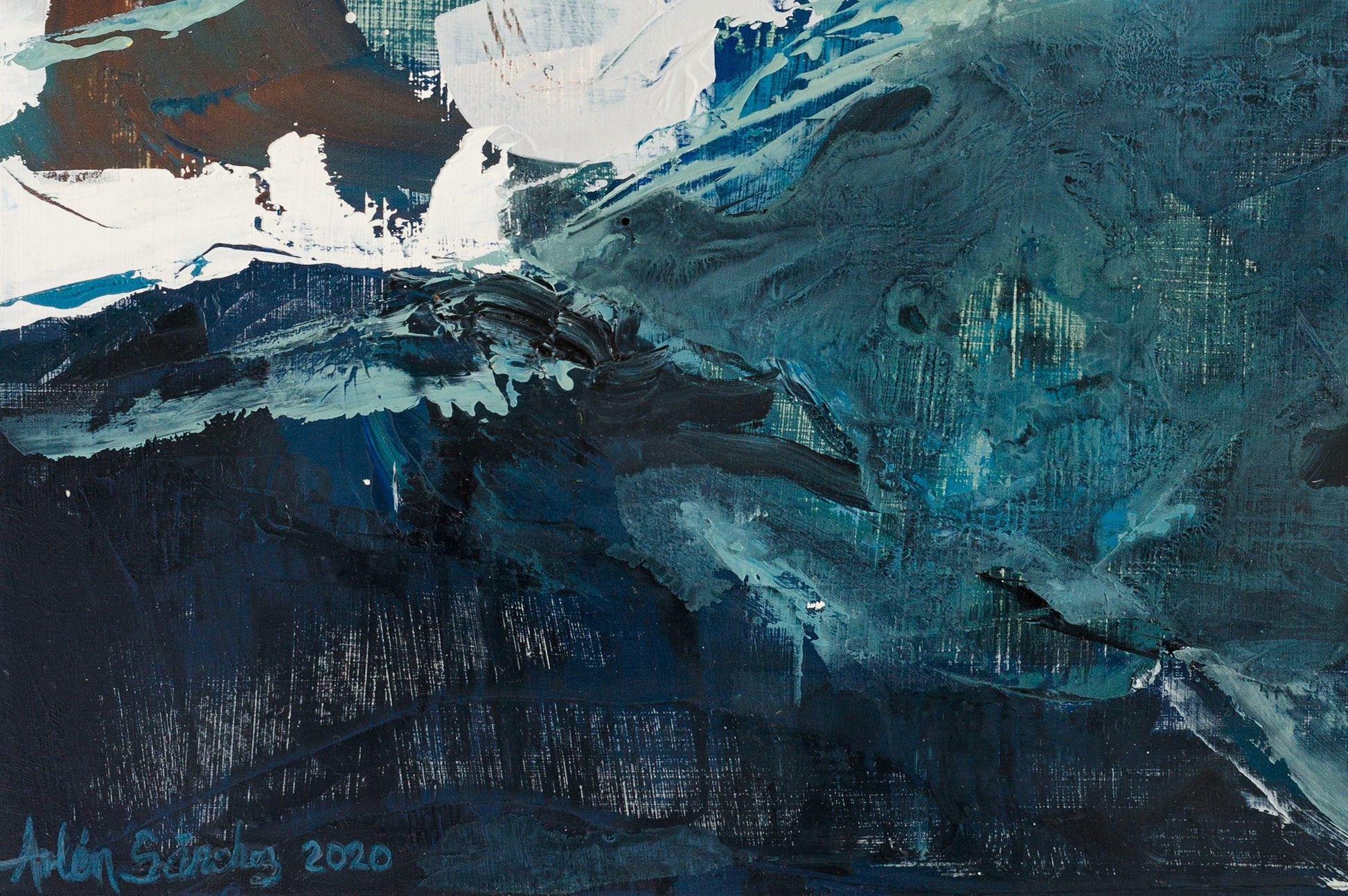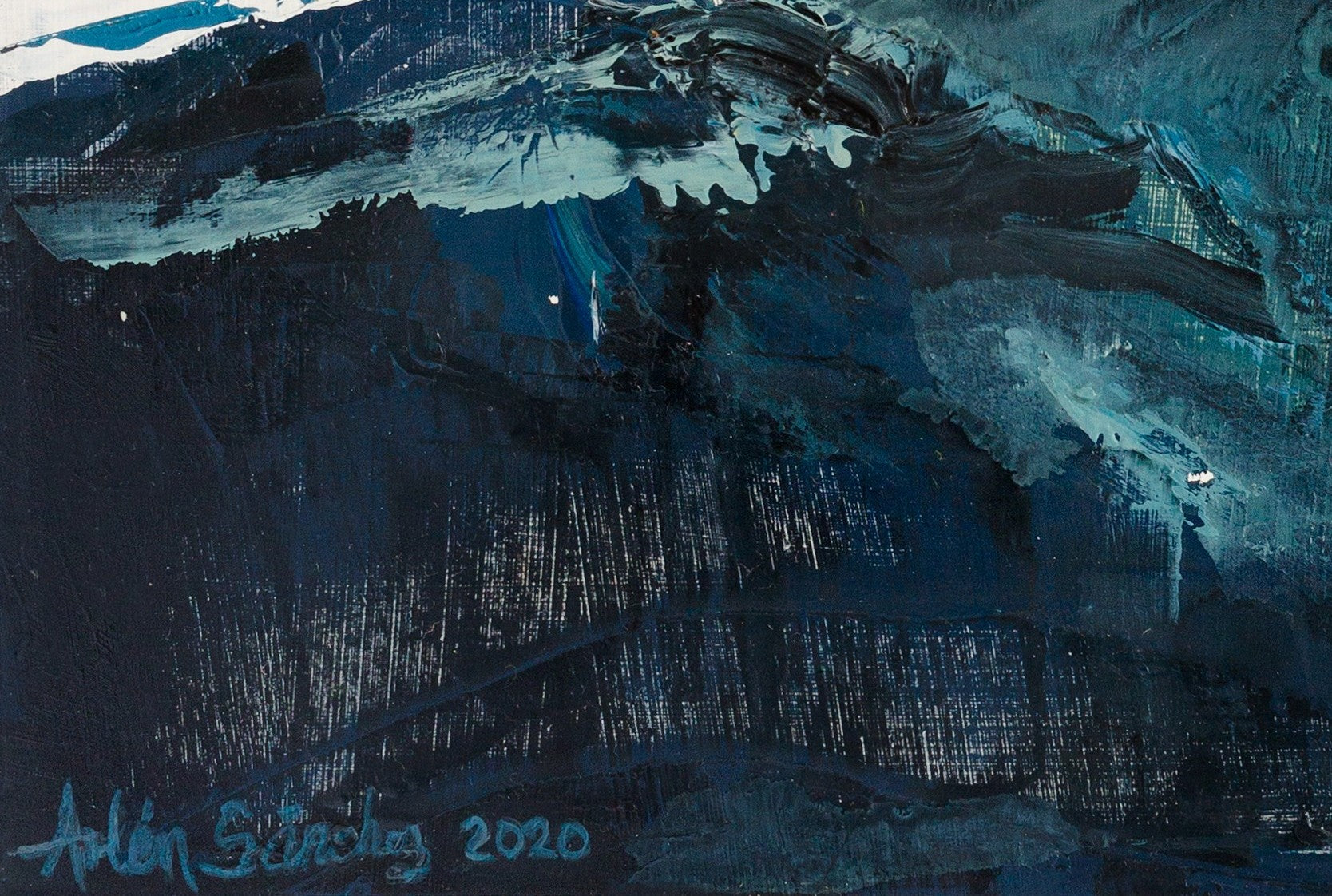 Esta pintura abstracta está inspirada en paisajes de la localidad de Cancún, específicamente las profundidades del mar, presenta una invitación a la introspección y la conexión con la naturaleza. Forma parte de la Colección Inmersión.