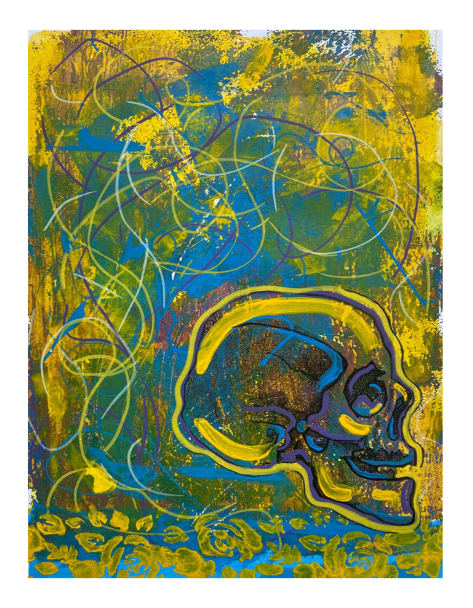 Pintura acrílica sobre papel, incluye marco de madera natural.