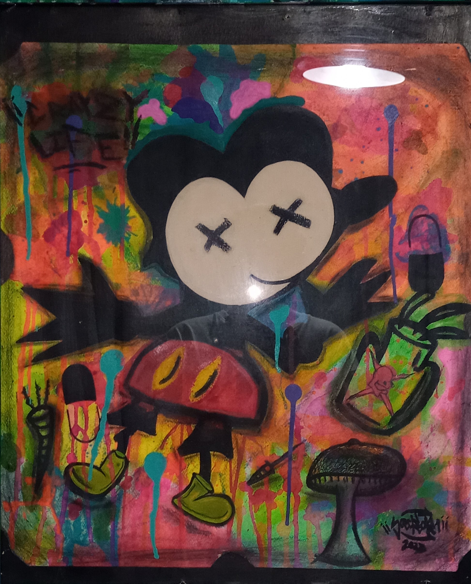 "Crayzy Life": es una adaptación de una de las ilustraciones de una caricatura de los años 40....50, donde representa la vida loca del personaje.....( yo ) acompañado de alcohol drogas, armas blancas, sexo, etc.