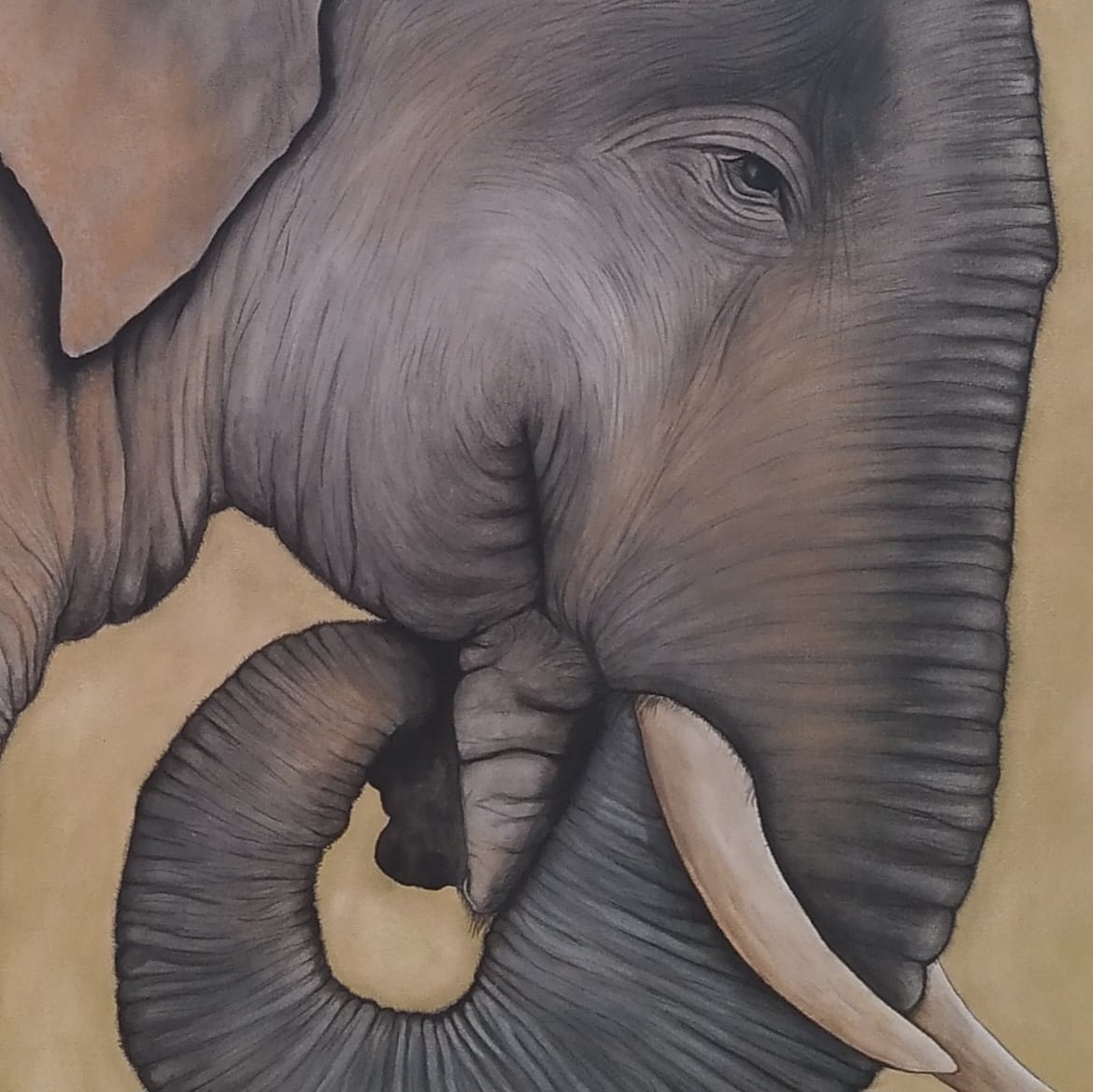 Esta pintura representa al elefante como símbolo de poder y fortaleza, lealtad y determinación. símbolos de la cultura india,