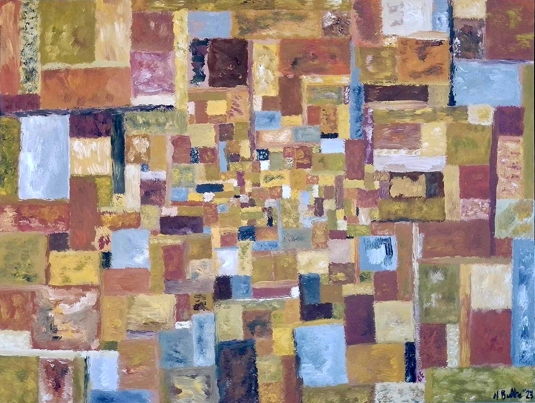 Esta obra forma parte de una serie sin otro objetivo que el de jugar con la pintura con solo dos reglas: escoger desde el inicio una gama de tonos, y utilizar al menos uno de ellos para hacer cuadros y rectángulos (aproximadamente), sin más restricciones. De este modo se logra una composición cuya creación apela al niño interior.