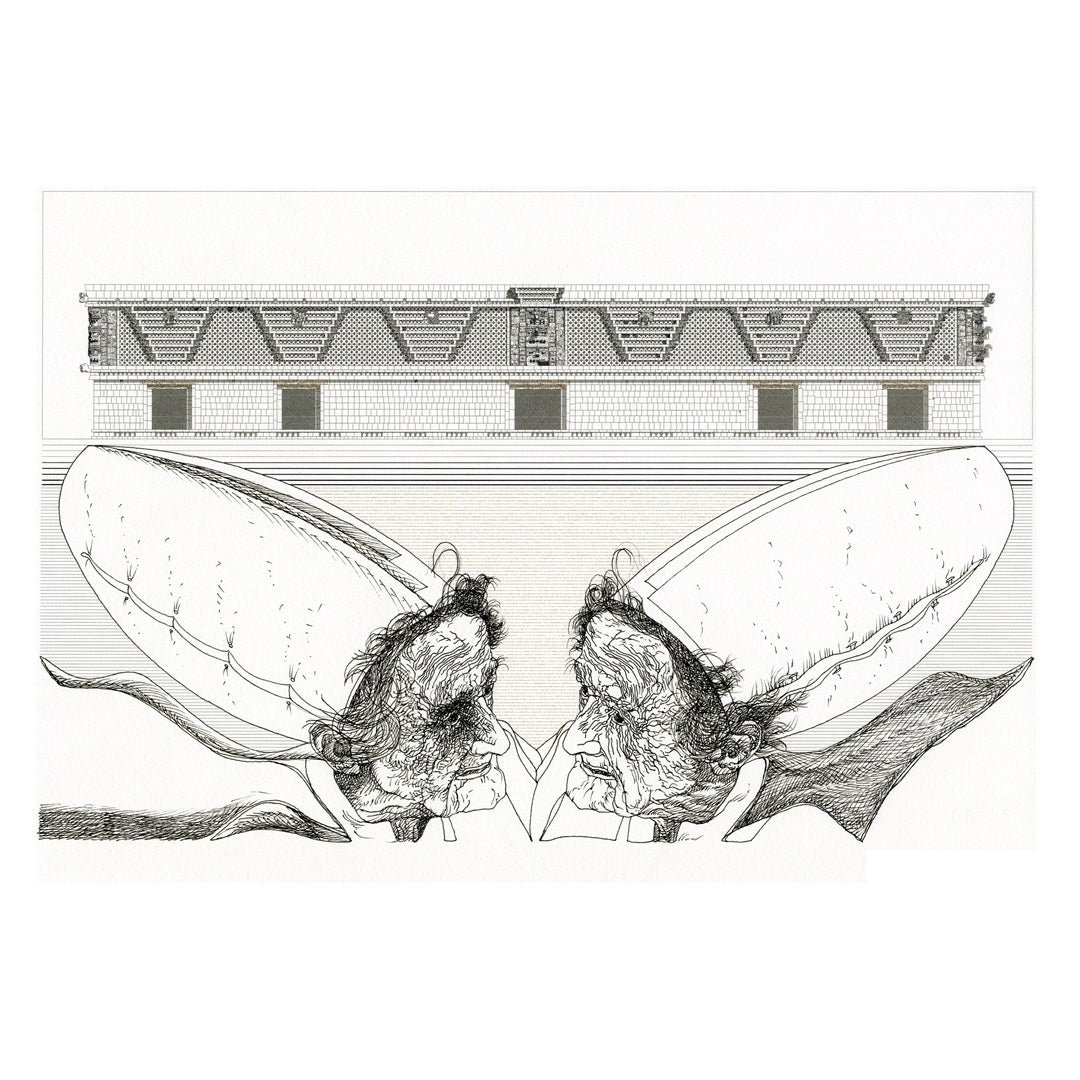 Frente al edificio oriente del cuadrángulo de las monjas en Uxmal, dos personajes con amplia experiencia pero fuera de lugar, intercambian opiniones sobre este mágico sitio.
