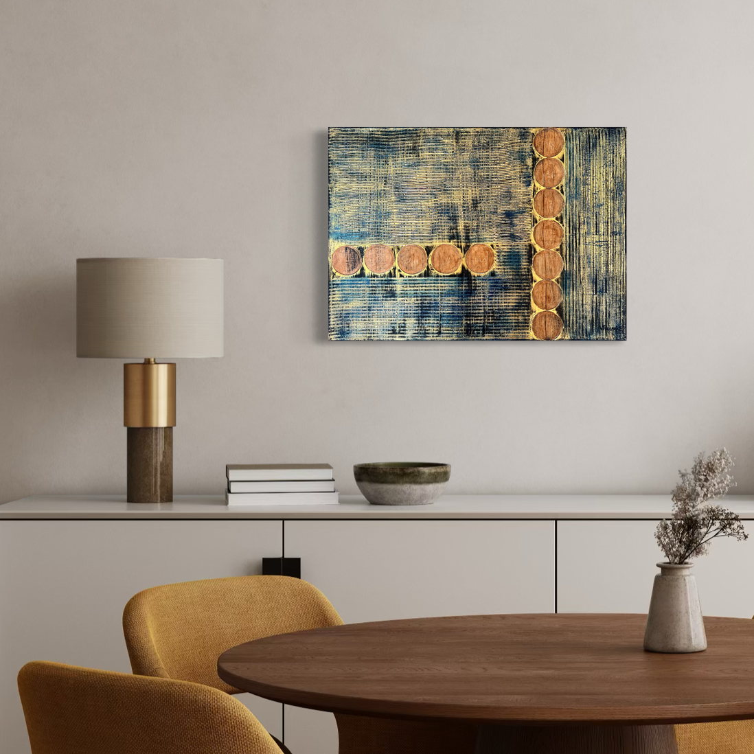 La obra destaca por su técnica en capas, relieves y transparencias, creando un efecto visual único que cambia según la luz. Ideal para coleccionistas de arte abstracto geométrico, amantes del arte contemporáneo latinoamericano y quienes buscan piezas que transmitan energía y armonía en sus espacios.