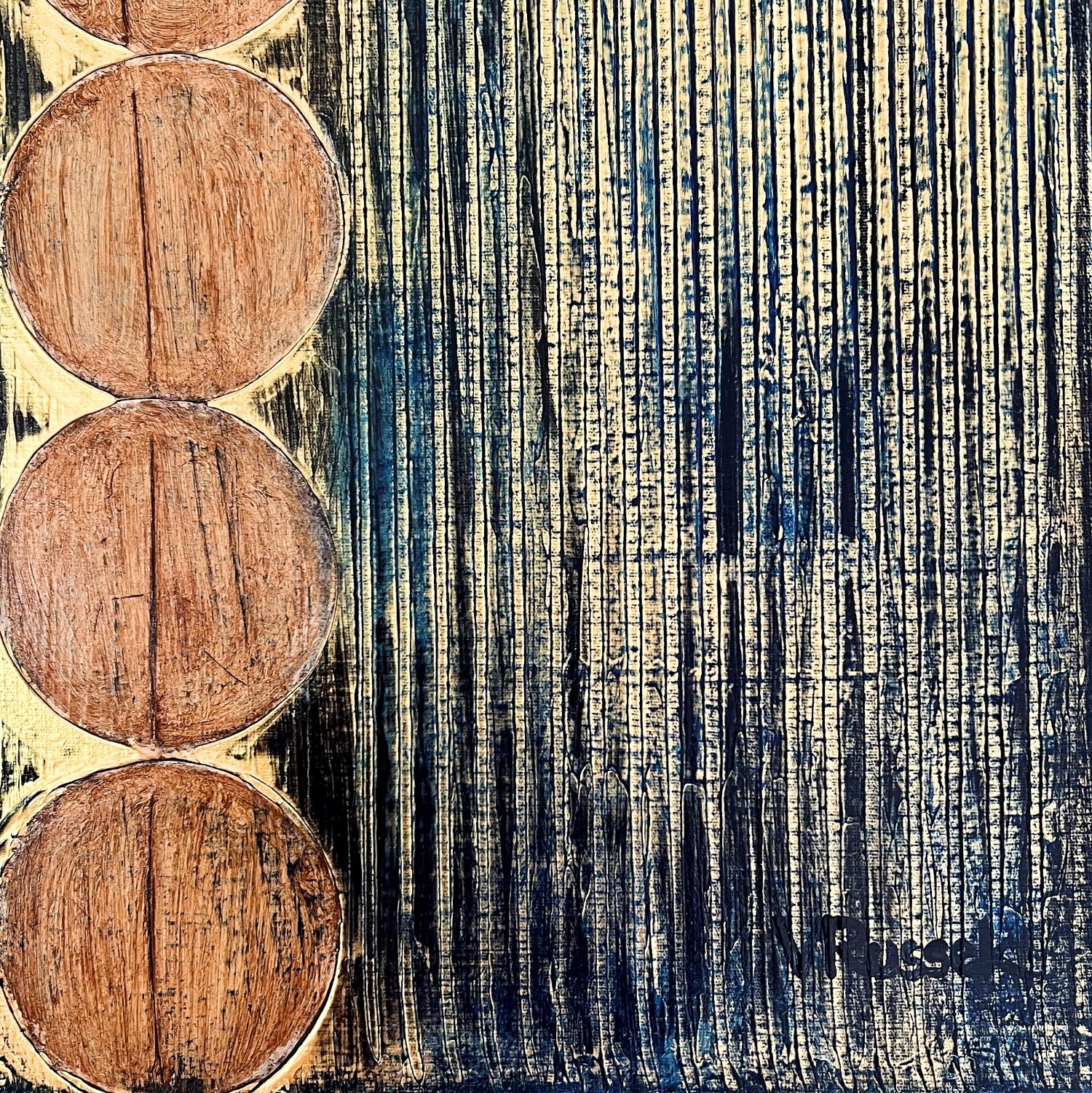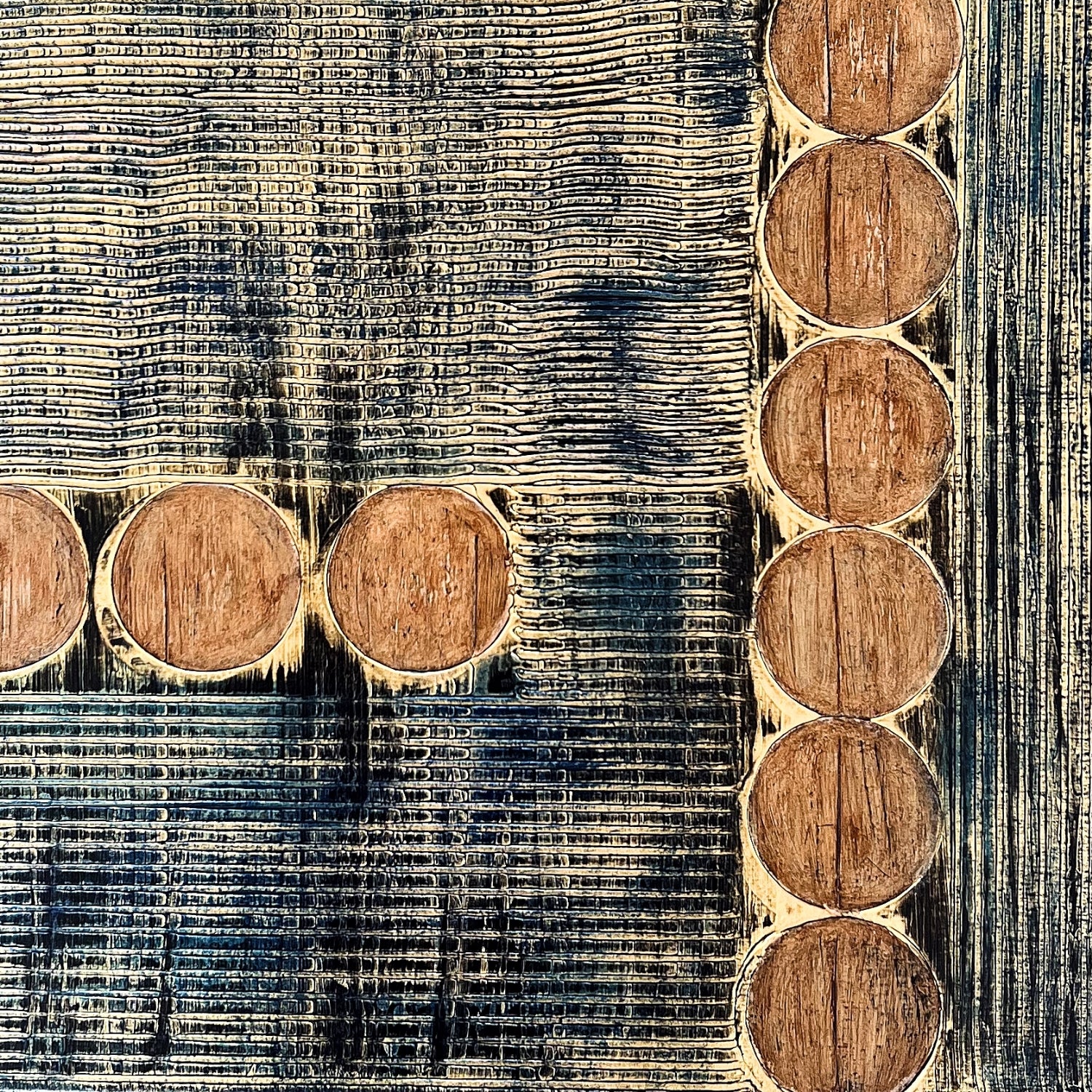 Esta pintura combina geometría abstracta, texturas profundas y una paleta en tonos ahumados y terrosos que evocan la conexión con la tierra, la protección y la estabilidad emocional. El Cuarzo Ahumado, piedra de transformación y limpieza energética, se convierte aquí en un símbolo de fuerza interior y equilibrio.