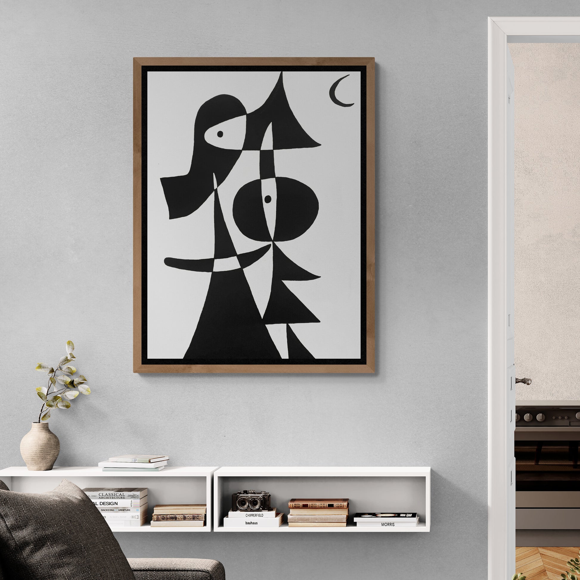 En Cuerpo escueto luna pintura de Enrique Pichardo, el artista presenta una pieza de 75x100 cm, realizada en acrílico sobre tela. Esta obra pertenece a la serie "Cuerpo escueto", donde las formas planas y los trazos simples expresan, con recursos mínimos, una poderosa serenidad cercana a la escultura. Desde los primeros trazos, se percibe un enfoque expresionista abstracto. Además, las líneas naturales y las formas singulares sostienen un diálogo continuo con el lienzo.