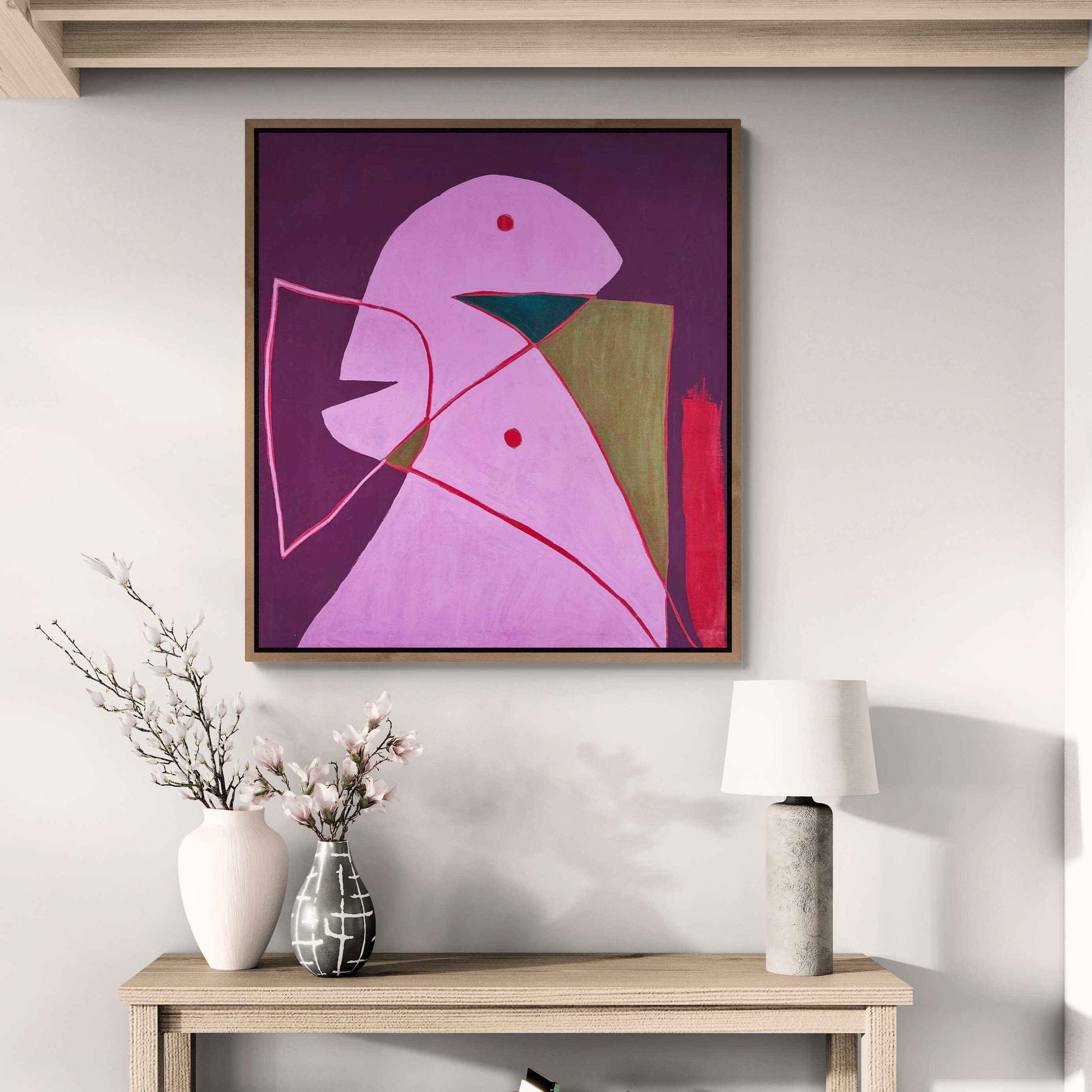 Cuerpo lila de Enrique Pichardo es una obra realizada en acrílico sobre un lienzo de 100x110 cm. En esta pintura, las tonalidades lila, rosa y rojo se combinan con trazos fluidos y formas orgánicas que evocan movimiento y vitalidad. La pieza toma inspiración de elementos propios del expresionismo abstracto, mezclando líneas naturales con una composición que recuerda la música en su fluidez.