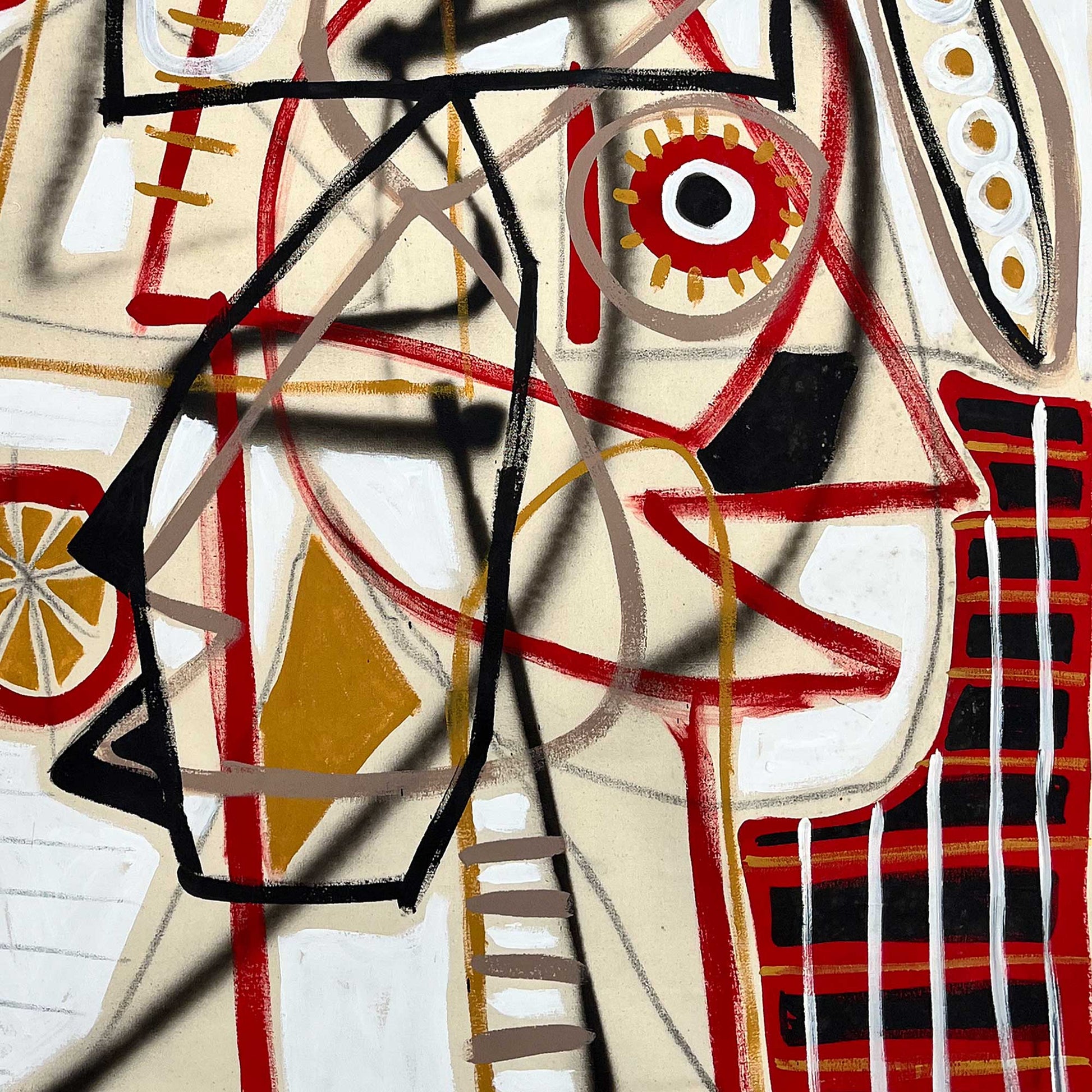 En esta obra en acrílico sobre tela de 75 × 100 cm, Cuerpos en bruto del artista Enrique Pichardo se despliega como una exploración directa y enérgica del gesto pictórico. La pieza, enviada habitualmente enrollada para su protección, presenta una figura simbólica construida mediante trazos negros decididos y extensiones de color que se relacionan con fuerza y naturalidad.