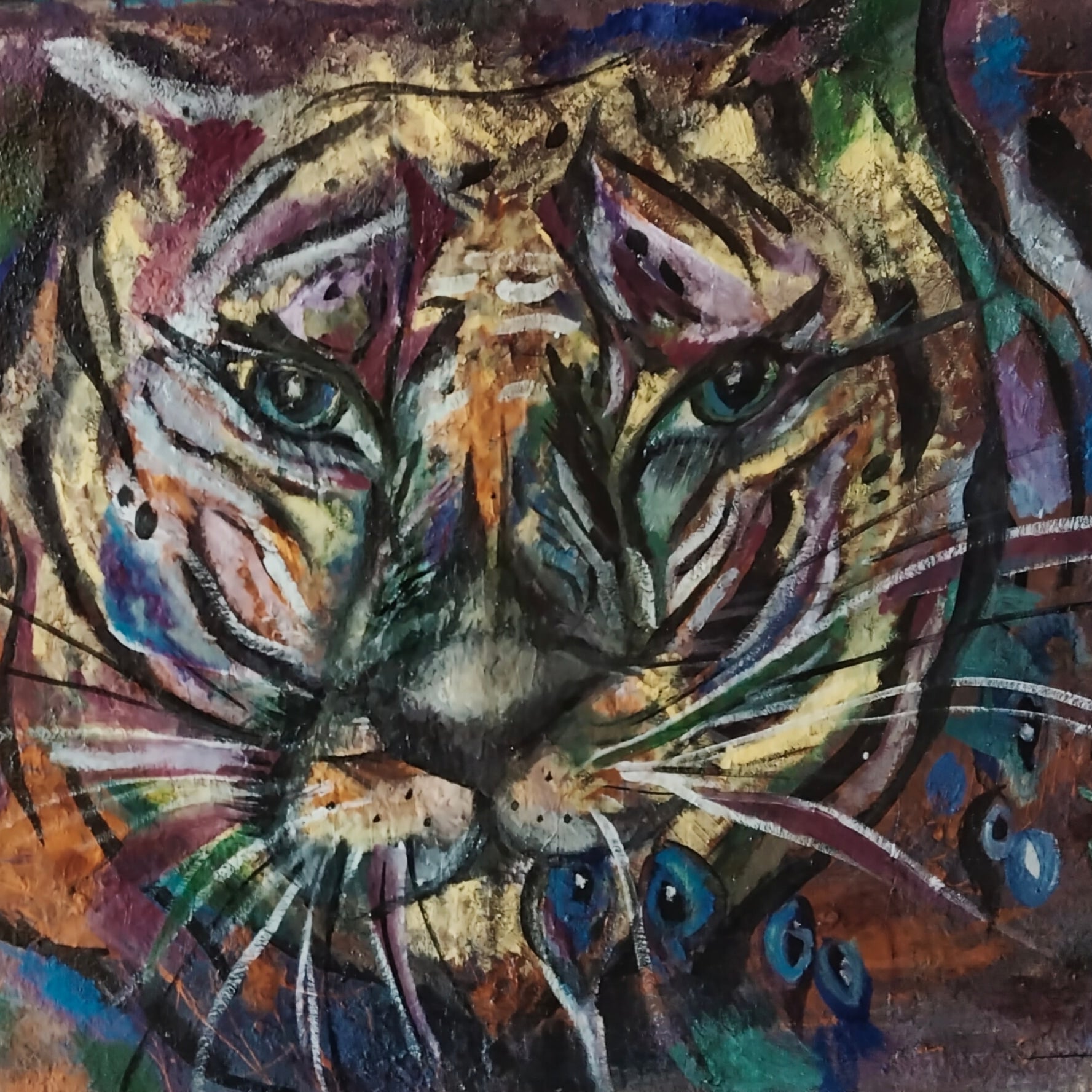 En la penumbra, el sol que se niega a descender, pero aun así sobre la piel felina se rasgan los colores, matices del pasado que ondean las penas de la memoria. Sus ojos son como estrellas reflejadas en un lamento, en inmensidad del firmamento.