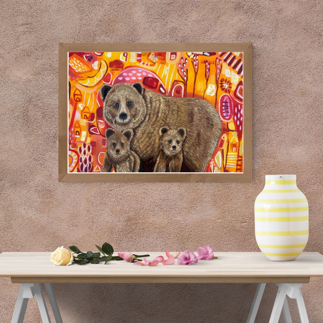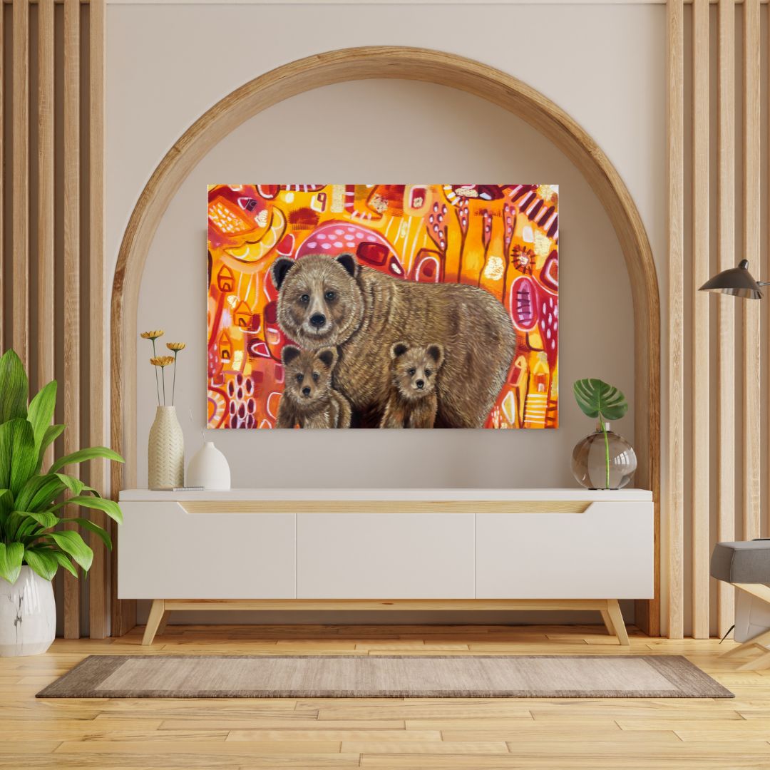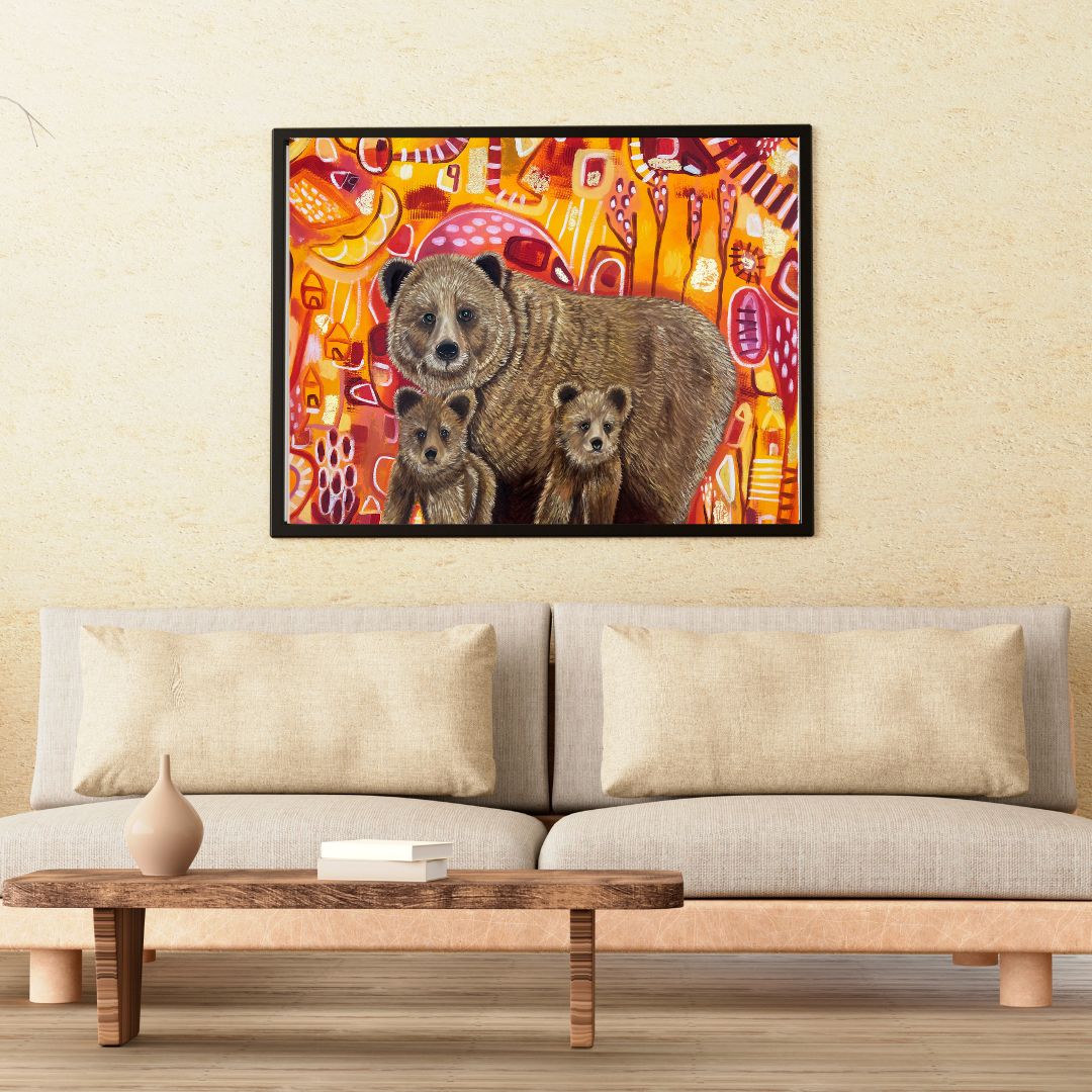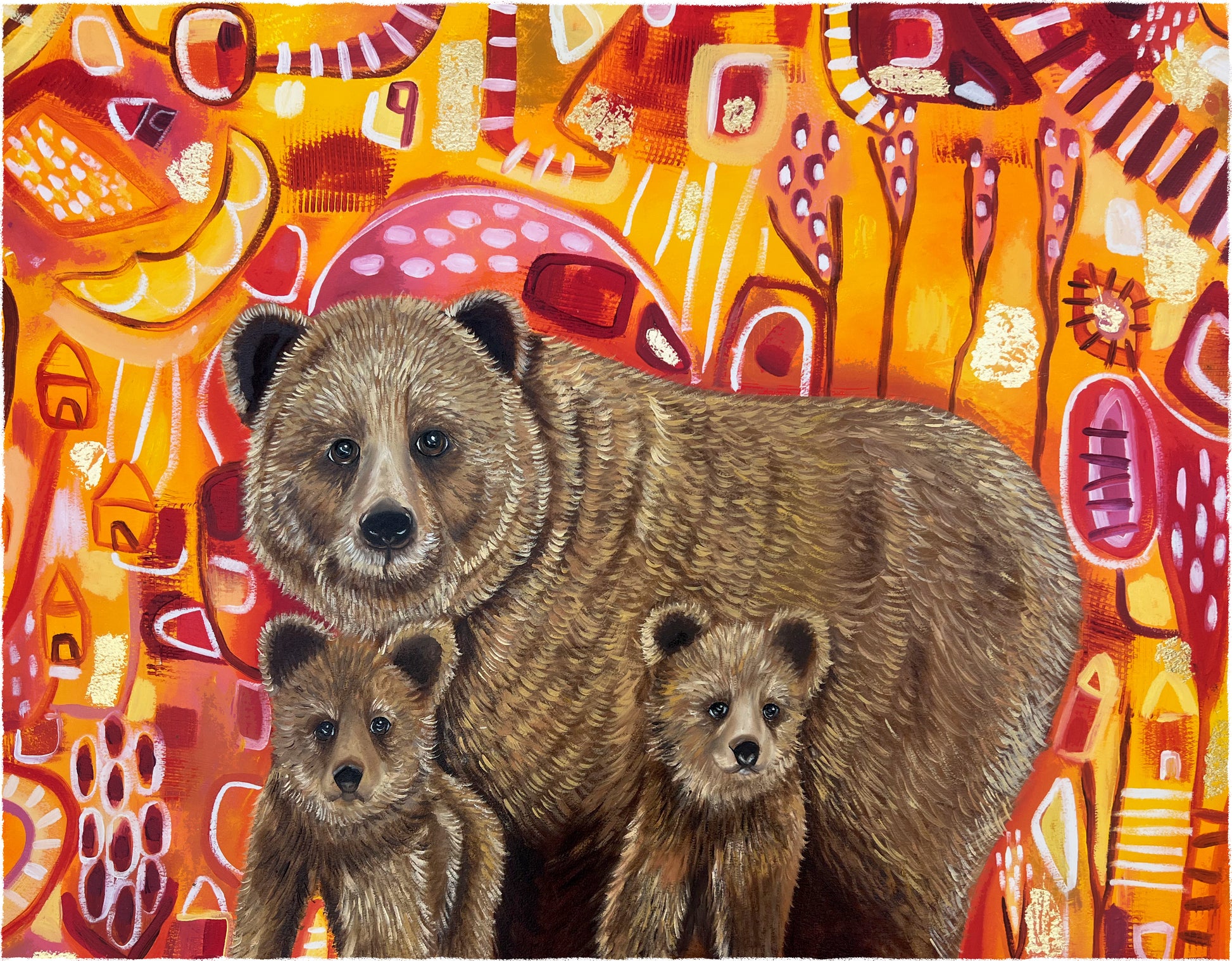 "Curious Little Bears". La belleza de la familia de osos con un fondo de colores llamativos que representa la expectativa de lo que viene, de lo que es el siguiente paso.