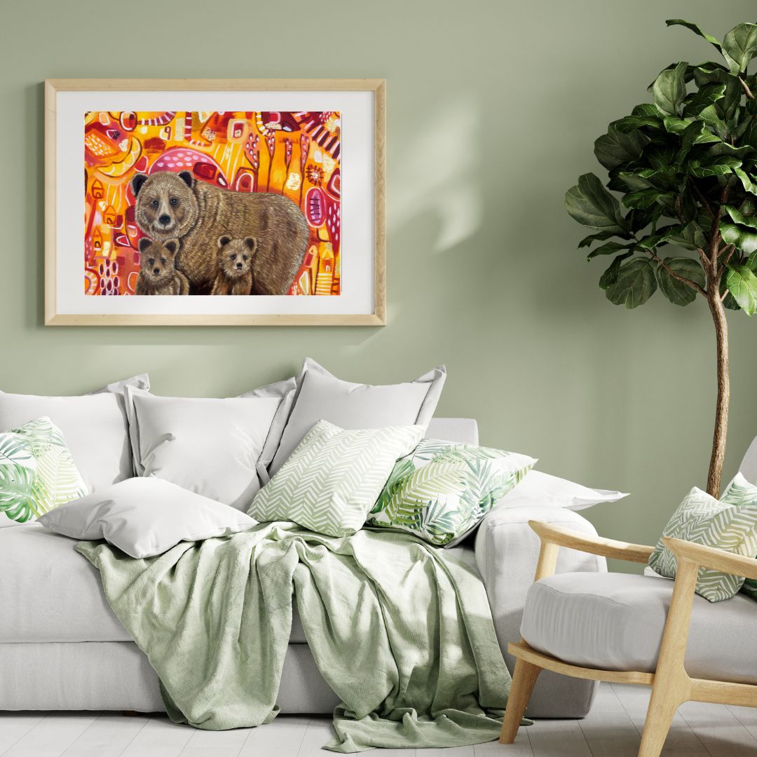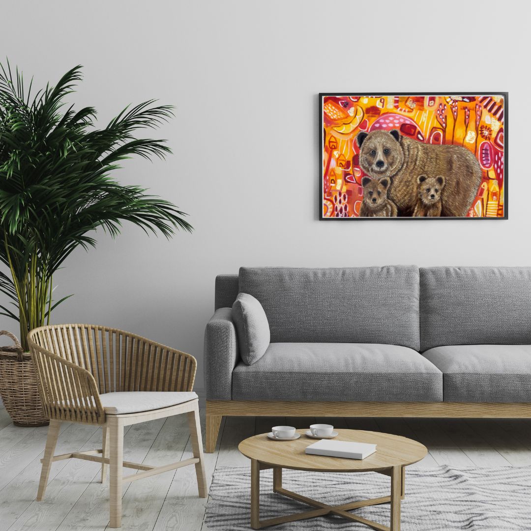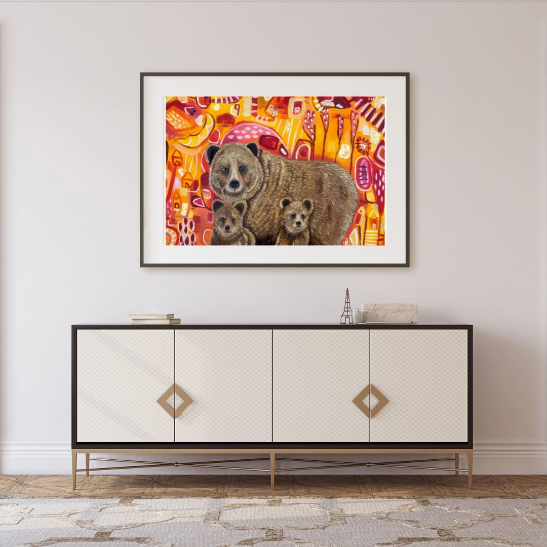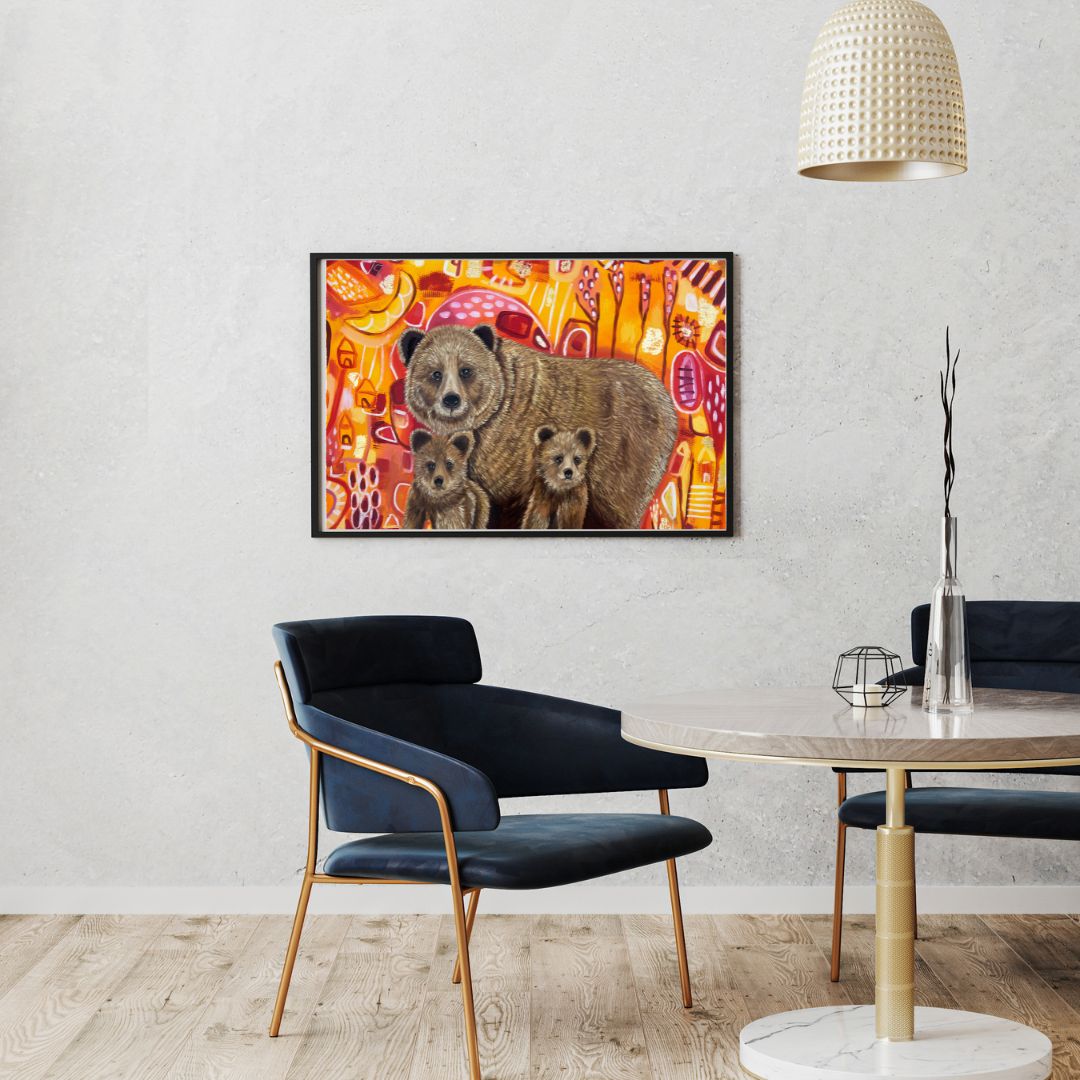 "Curious Little Bears". La belleza de la familia de osos con un fondo de colores llamativos que representa la expectativa de lo que viene, de lo que es el siguiente paso.