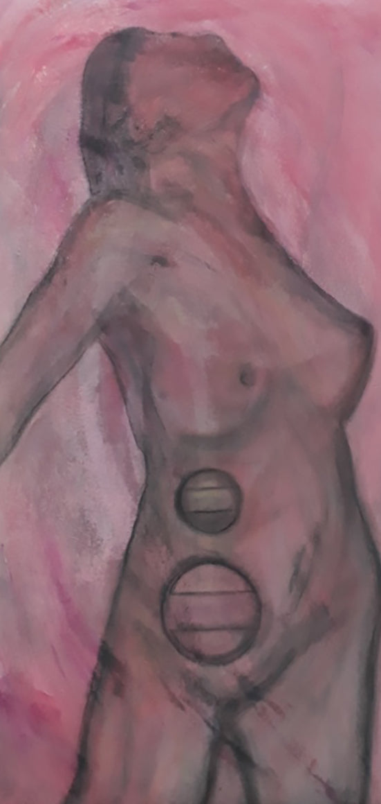De la serie “LIBERA-2”, esta obra alude a la interpretación intensa del mundo, tras lo oculto. Colores cálidos, trazos oscuros, marcas como engranajes sobre la piel. Obra que se enmarca en un tiempo paralelo, una vez que “lo inconfesable es develado”, en las huellas, tras el dolor y en la repercusión del cuerpo sutil, propio del alma recrudecida en la experiencia física. Obra sin enmarcar.