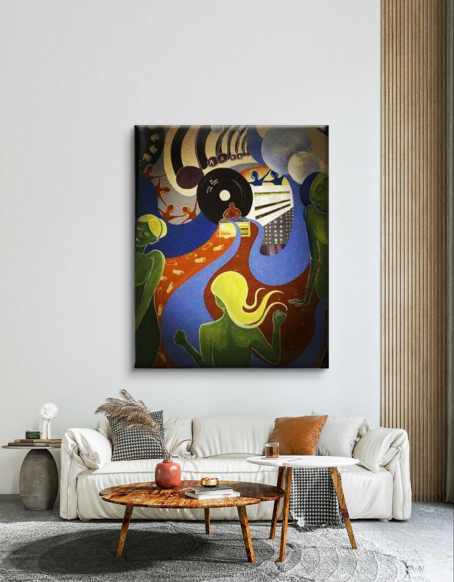 Este Obra con estilo figurativo es parte de mi serie «Mi Música» cuál muestra un diálogo entre la música y el auditorio