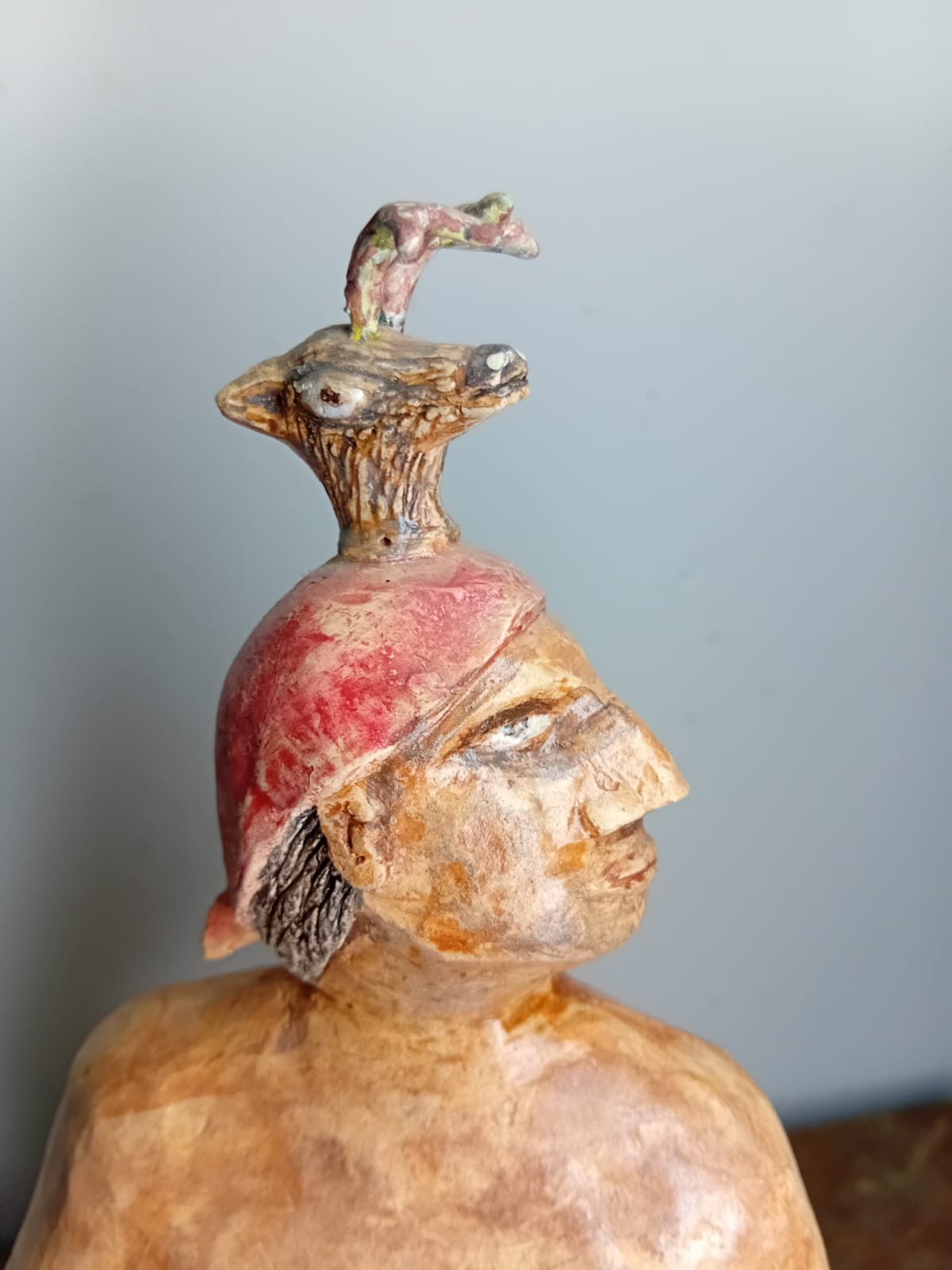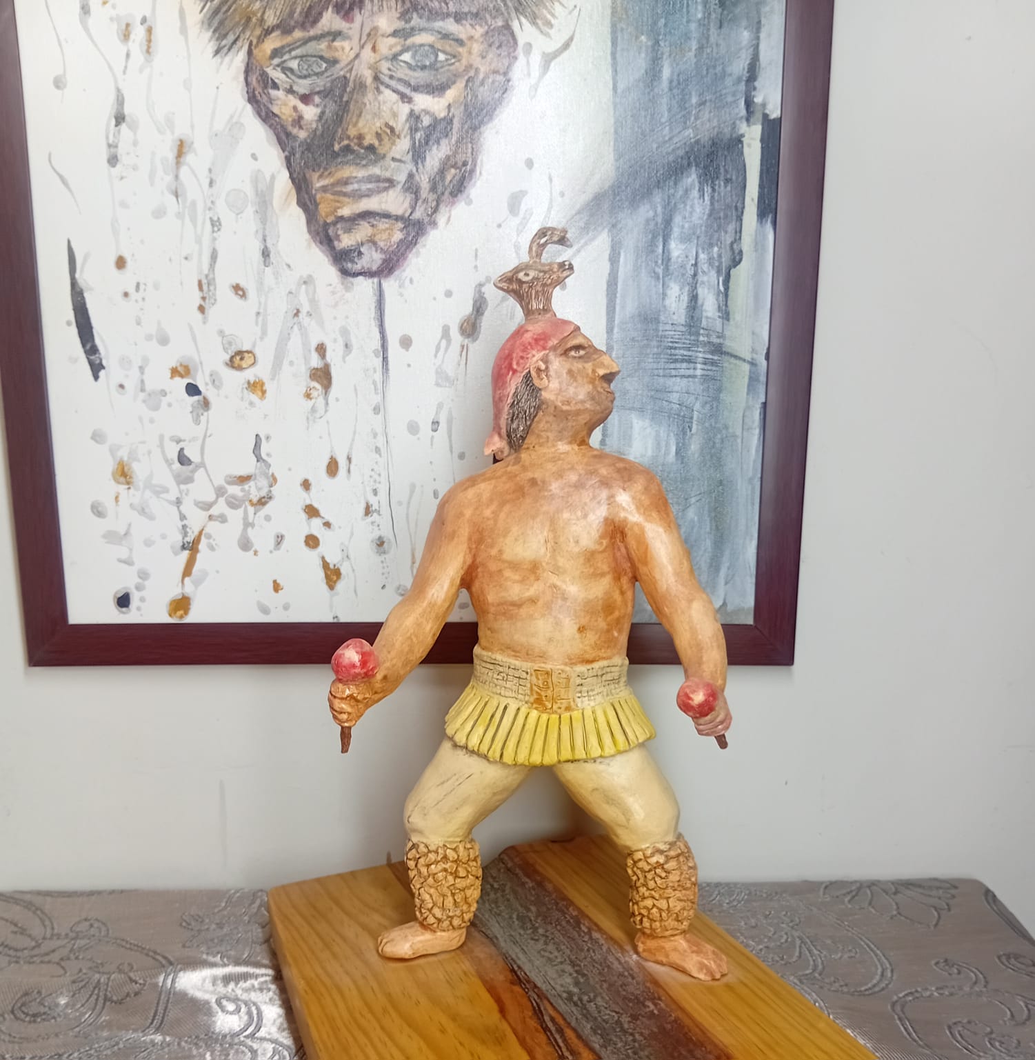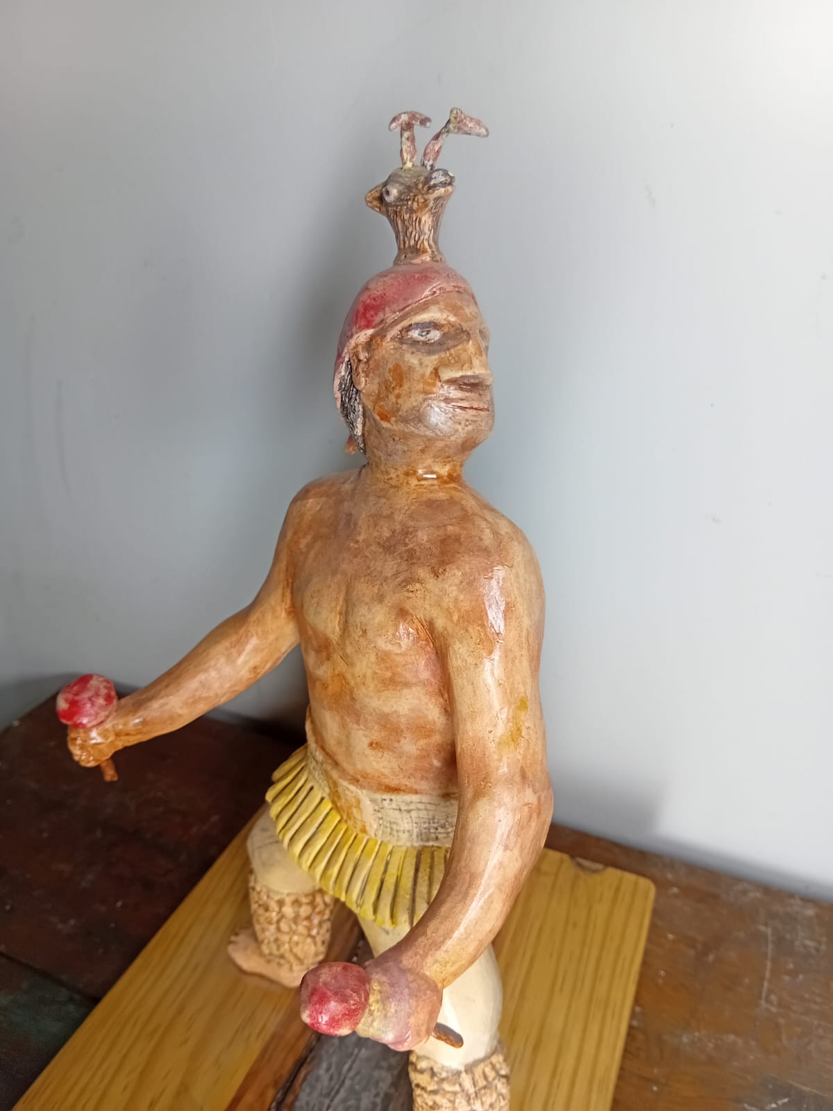 El danzante Yaqui de venado se diferencia del Mayo-Yoreme por no usar camisa en su vestuario, la obra esta creada en modelado tecnica ceramica a alta temperatura con esmaltes ceramicos.