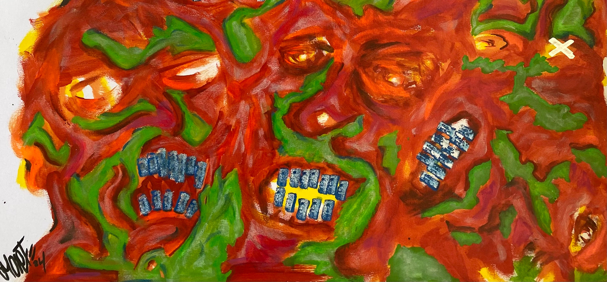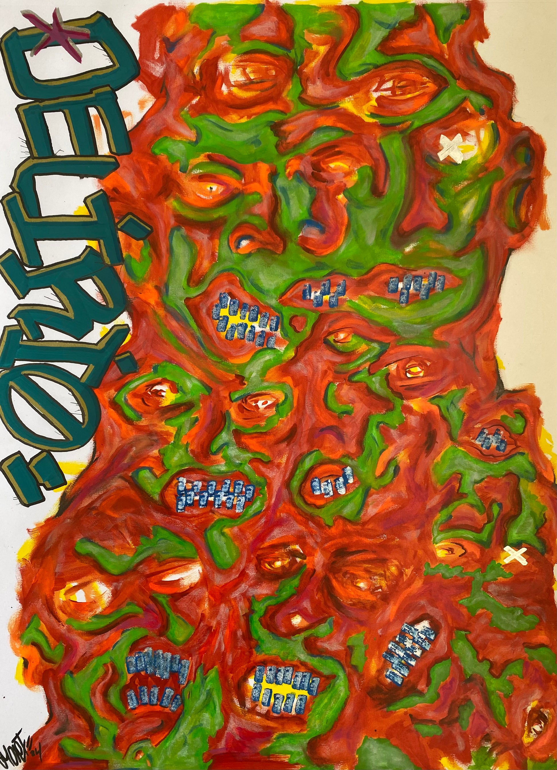 Esta obra es parte de una serie de pinturas y dibujos hechos durante mi proceso de rehabilitación en un psiquiátrico.