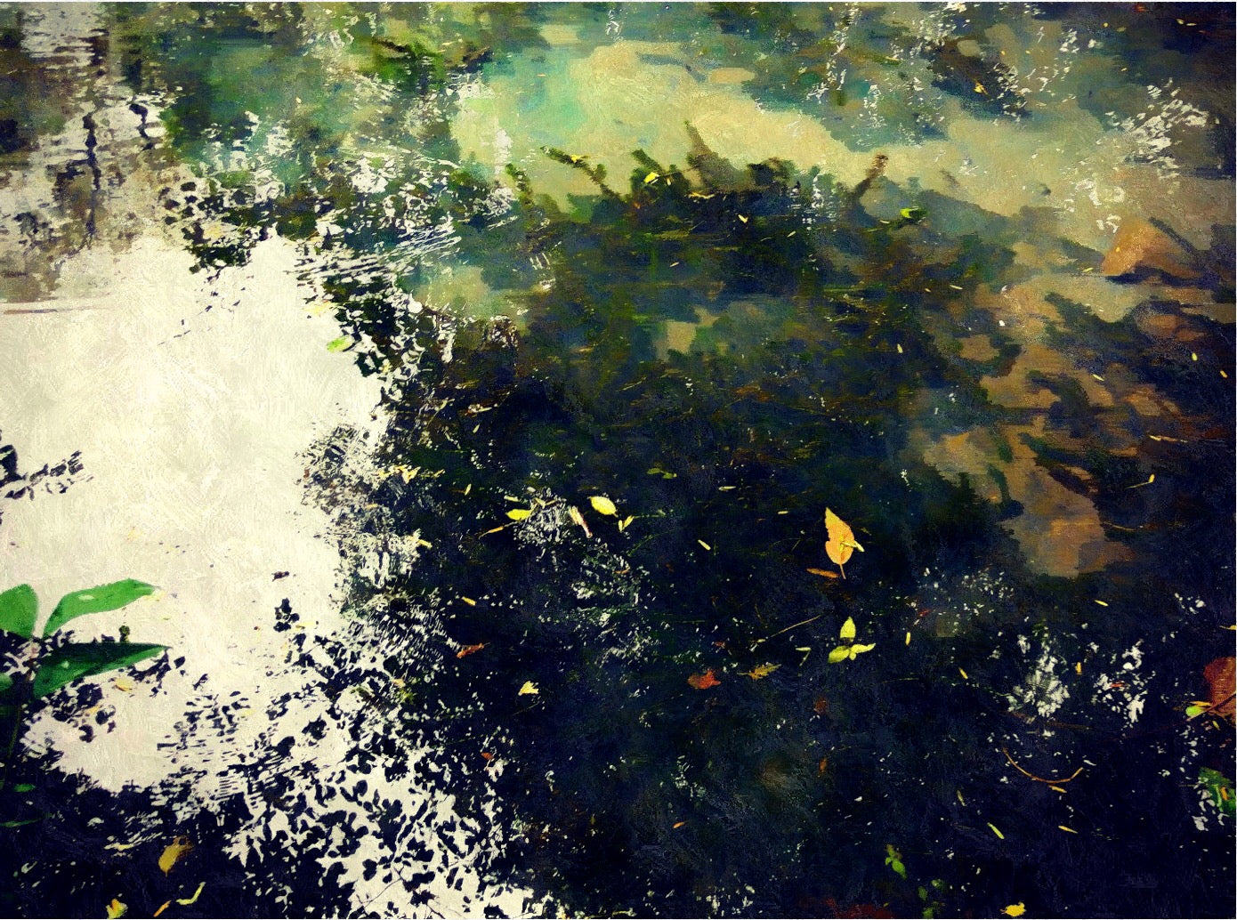 El agua que existe en la colección ;«Los juegos de la superficie (2021); hace sus veces de guía, maestra y carcelera de todos los entes que la habitan y la observan, de mis pinceles, de la cámara, de mi mirada y mi palabra también. Aquí encontrarán espacio para lo que pudo haber sido y para lo que fue. Pero cuidado de no perderte en el fondo porque de lo más oscuro, ni en la imagen ni en la vida es tan fácil volver.