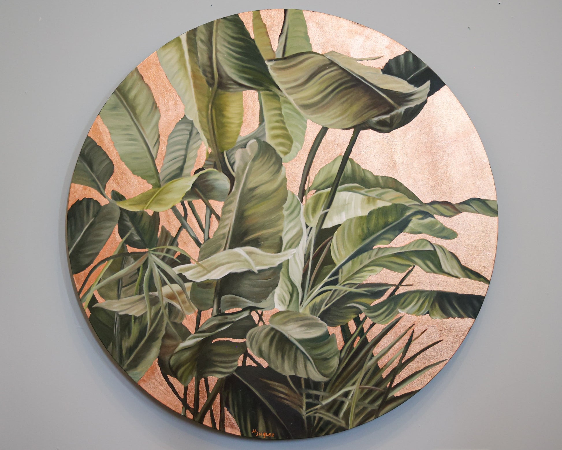 Óleo sobre tela con fondo de hoja de cobre