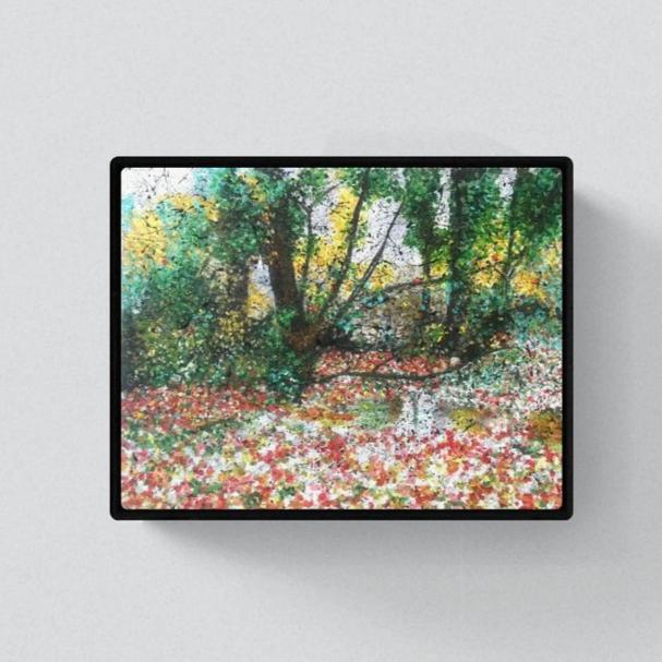 Paisaje de atmósfera otoñal,trabajado principalmente en puntillismo y dripping.