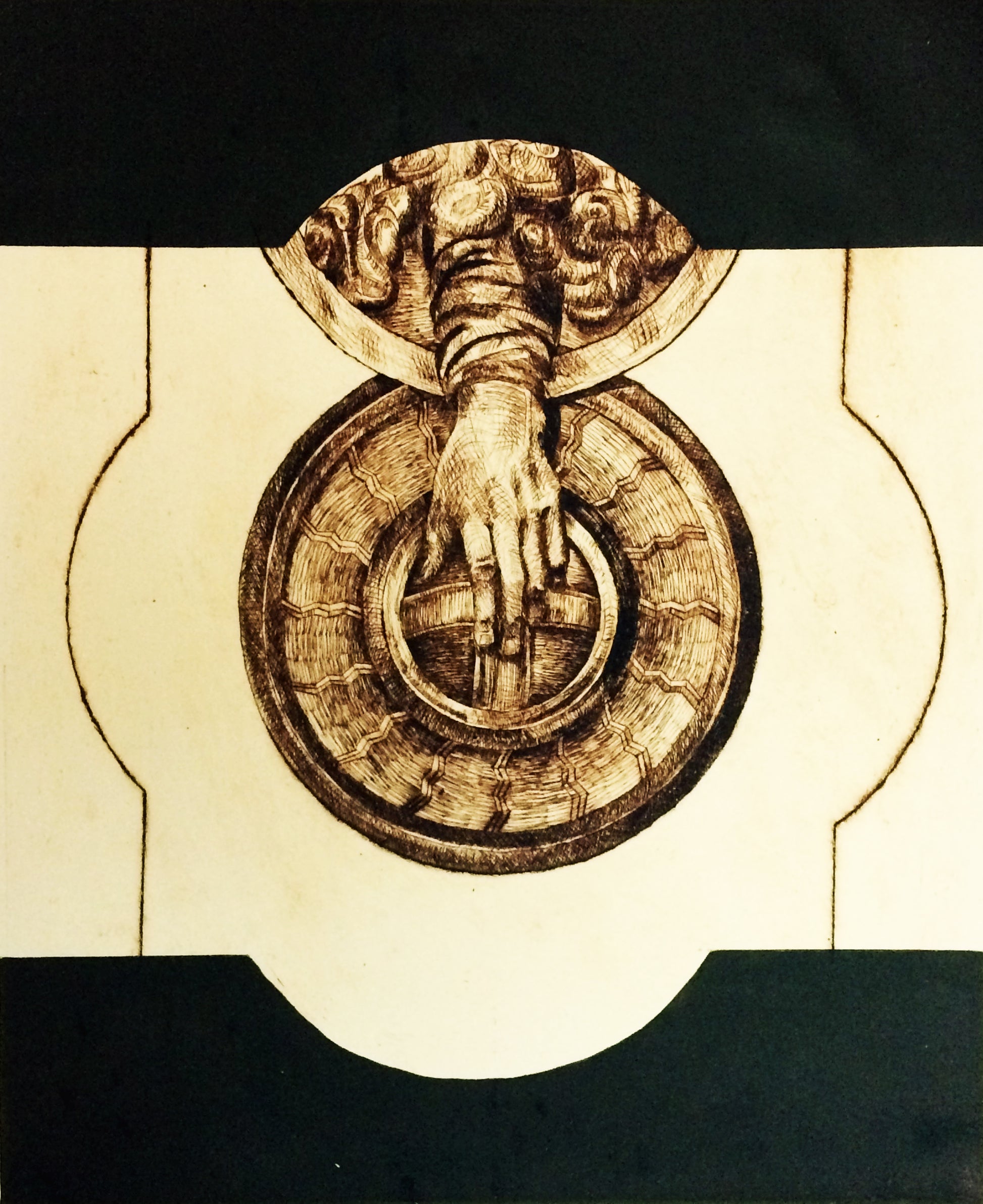 Estampa realizada en 2005, en esta obra combine dos técnicas de grabado impresas en color sepia una de grabado en hueco y otra de grabado en relieve, es en sí una obra de contrastes, al centro la imagen de una mano que desciende de un cielo atiborrado de nubes y toca la un círculo entre tierra y sol, son imágenes barrocas, orgánicas, complejas. llenas de luz y obscuridad, enmarcadas por líneas y planos geométricos simples blancos u obscuros sin medias tintas. Esta obra habla sobre el universo, la vida y lo complejo que parece ser a lo que esperamos el interceder de una mano divina con dedos ciegos, que nos de soluciones y nos muestre el camino, siendo que si vemos un poco más allá nos damos cuenta de que todo es muy simple y seguro.