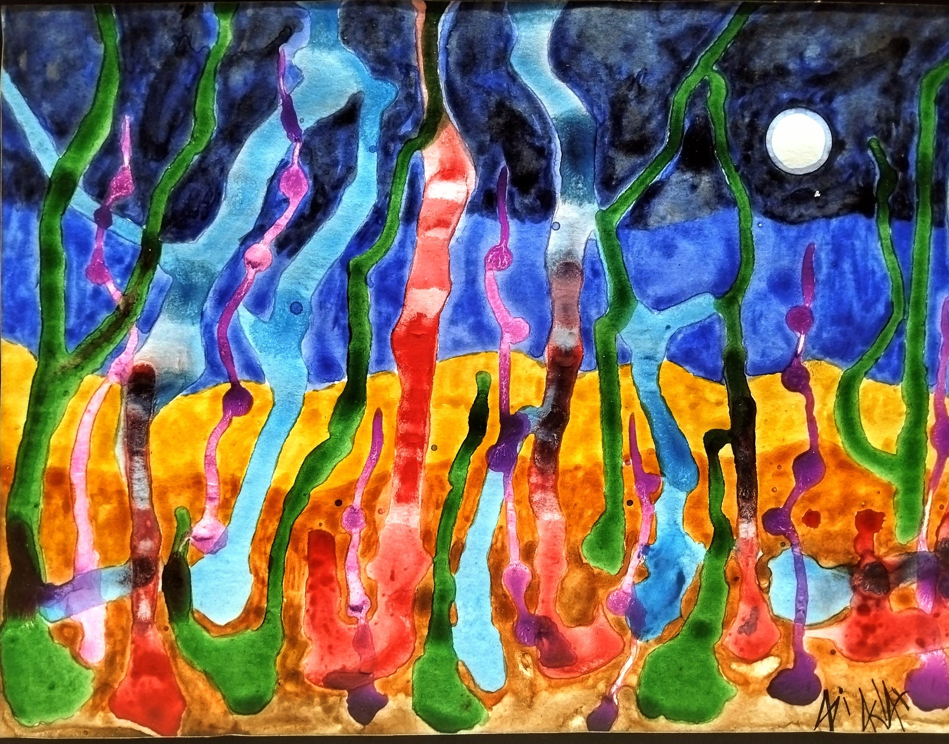 En el medio de la noche entre colores que emergen de la mente cuál si fuera un bosque de sentimientos, la luna emerge como una bella distracción.