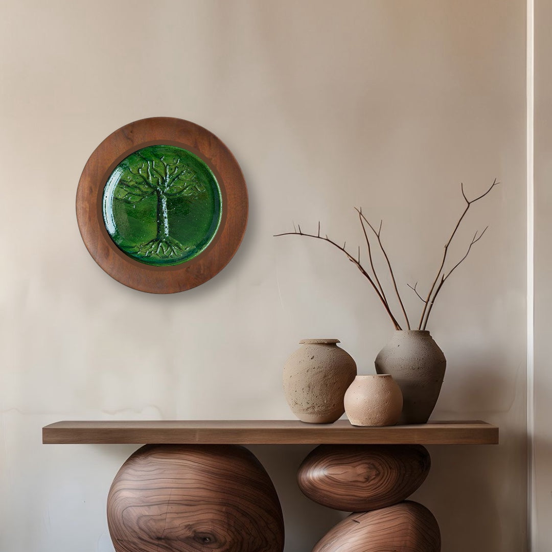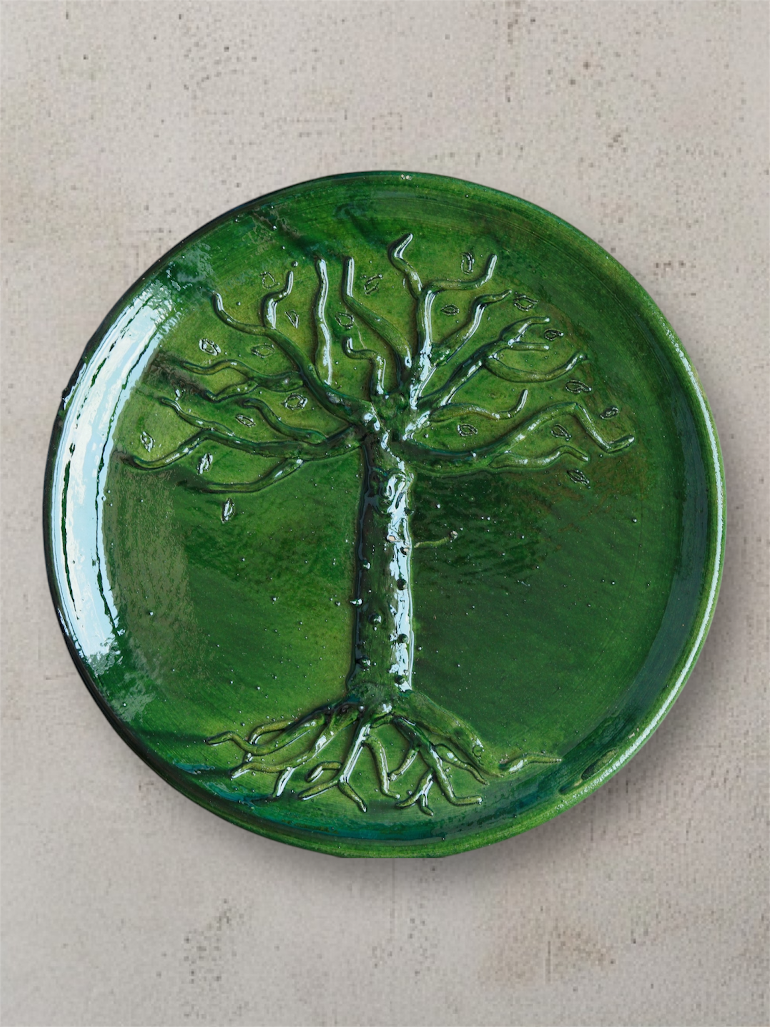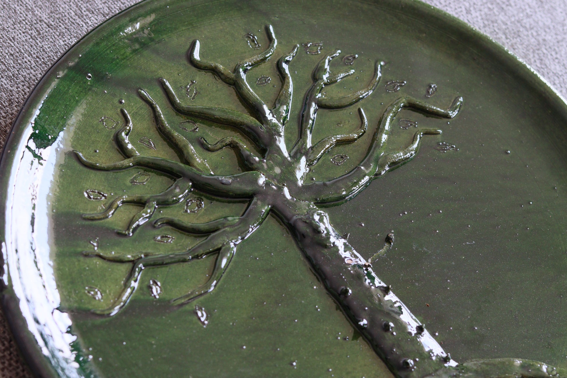 En esta pieza única se representa la ceiba, un árbol sagrado para los mayas llamado el “árbol de la vida”. Realizado en barro verde, porque es el color con el que se suele representar a este árbol sagrado, ya que en su etapa joven se puede ver este árbol completamente verde con sus espinas en el mismo color, en esta obra esculpida a mano, destacan a relieve las tres partes del árbol, las raíces, el tronco y las ramas, que representan los tres niveles cosmog