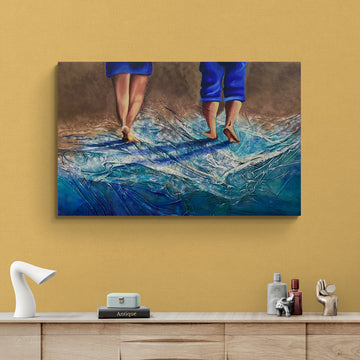 Esta obra retrata el camino de una pareja saliendo del mar juntos para comenzar a escribir su historia, surgió a partir de mi búsqueda de una pareja de vida mostrando el movimiento del mar como un elemento de la naturaleza el cual disfrute mucho mientras viví en la playa y aprendí a observa sus detalles y formas que se ven a la orilla del mar. De la serie "Sentimientos" Año 2021