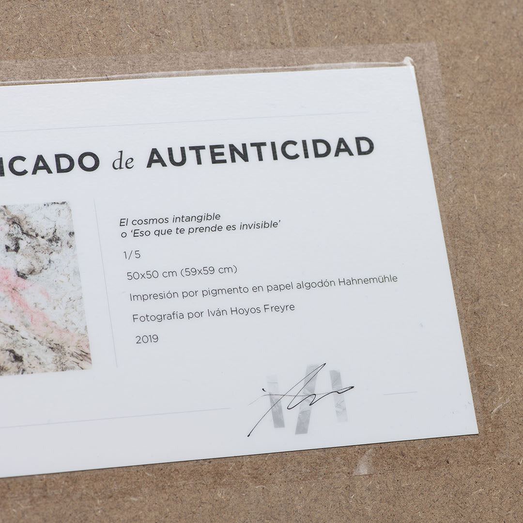 Parte de la serie Telúrico. "Necio aquel que pone precio al tiempo, al arrebato del espíritu y al polvo de estrella. Que lo que más vale no se puede preciar. Que lo que no se toca es lo que se guarda por siempre en el alma. Que la memoria no se hace de lo que los sentidos atrapan."