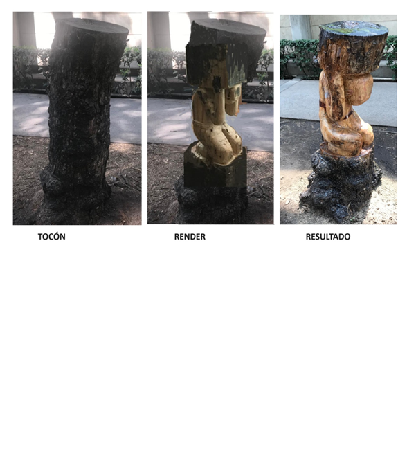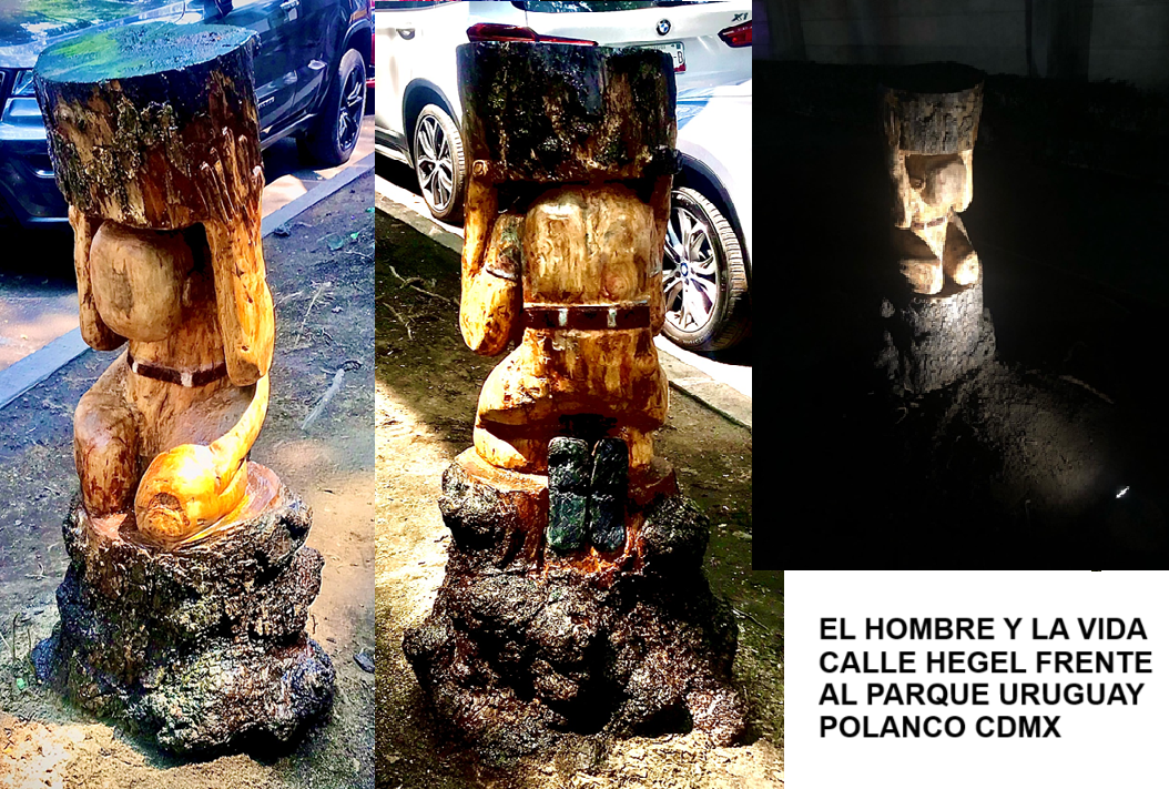 El esfuerzo que el hombre hace para llevar su vida a delante. Requiere entereza y decisión. Esta escultura es motivadora. Talla en madera. Usé el mismo tema para la escultura en la calle de Hegel, Polanco, CDMX, partiendo de un tocón abandonado. 40X8X8cm. El árbol 120X30cm. Presento el render que se utilizó para obtener el permiso de la delegación Miguel Hidalgo, actual propietaria de la escultura en la calle. Se puede cotizar en bronce.