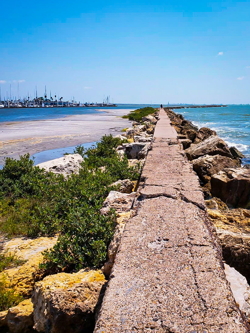 Una pareja a lo lejos viendo el mar desde el muelle de Corpus Christi, Tx.