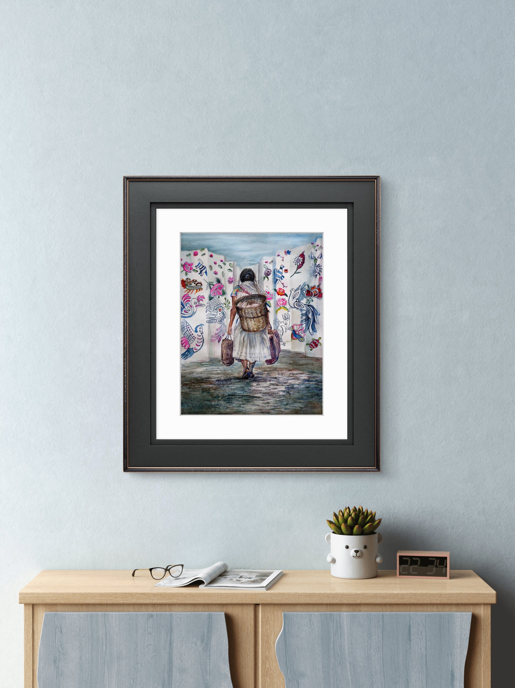 Una vez ubicada la obra en su lugar de exposición, te recomendamos evitar tocarla, no la expongas a cambios bruscos de temperatura y ten cuidado exponiéndola mucho a la luz. Procura mantenerla limpia, libre de polvo y comida y trata de no limpiarla con productos químicos que usarías normalmente en tu casa. Con esto lograrás tener una obra como nueva.