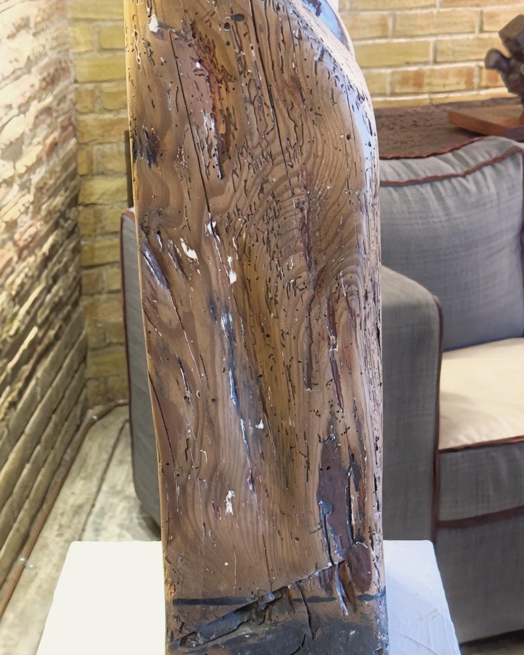Técnica: madera centenaria, tallada a mano, incrustaciones de acero y acabado policromado; con un propósito humano